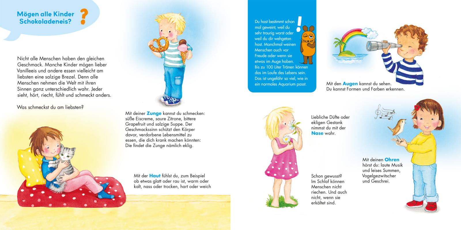 Warum schwitzen Menschen bei Hitze? Was passiert im Körper, wenn man lacht oder pupst? In diesem Buch geht es zusammen mit der Maus auf Entdeckungsreise durch den menschlichen Körper. Dabei hat sie für alle Kinderfragen ein offenes Ohr und immer eine mausschlaue Antwort parat. Perfekt für kleine Abenteurer*innen ab 2 Jahren!