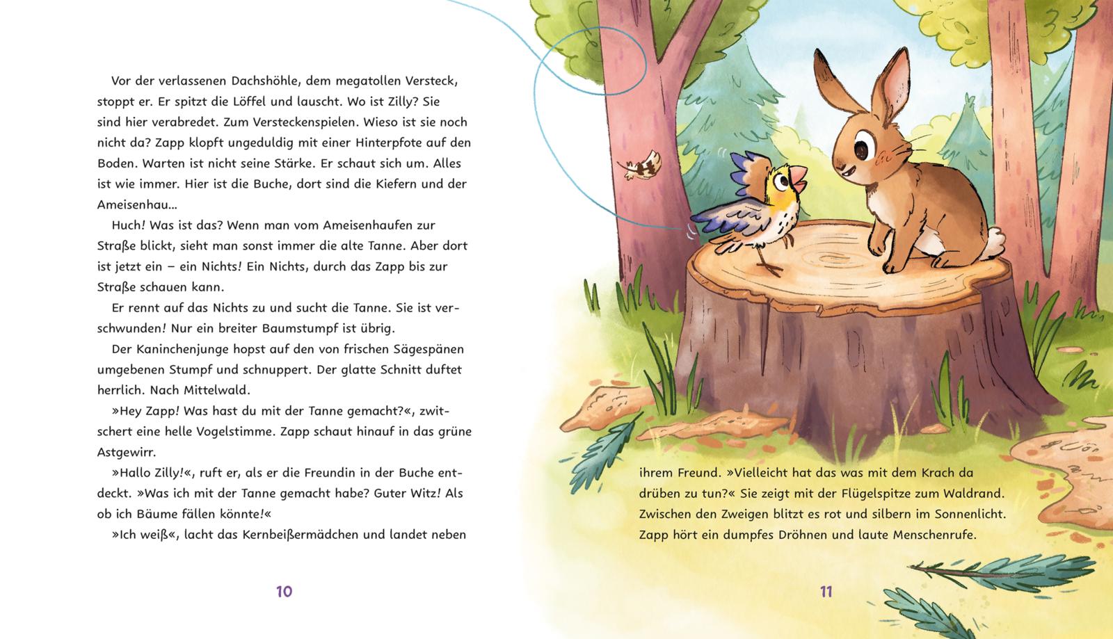 Zilly und Zapp sind völlig unterschiedlich und trotzdem eng befreundet. Das Kernbeißermädchen und der Kaninchenjunge lieben es, gemeinsam durch ihr Zuhause, den idyllischen Mittelwald, zu streunen. Eines Tages hören sie dabei seltsame Geräusche. Die Ursache dafür sind große Maschinen, die Zapp richtig cool findet - laut, bunt und glänzend, diese Fahrzeuge könnte er den ganzen Tag beobachten! Zilly ist das alles etwas zu laut. Der Lärm ist aber nicht das einzige Problem, das stellen die beiden bald fest. Denn die schweren Maschinen fällen Bäume und zerstören den Wald. Immer mehr Tiere bekommen Angst, geraten in Gefahr oder müssen ihr Zuhause verlassen. Der ganze Wald versinkt in Chaos und die Tiere gehen vor lauter Angst sehr grob miteinander um. Das können Zilly und Zapp nicht weiter zulassen! Gemeinsam mit anderen Tieren und engagierten Menschenkindern, die sich in einem Protestcamp für den Erhalt der Bäume stark machen, wehren sie sich gegen die Rodung.