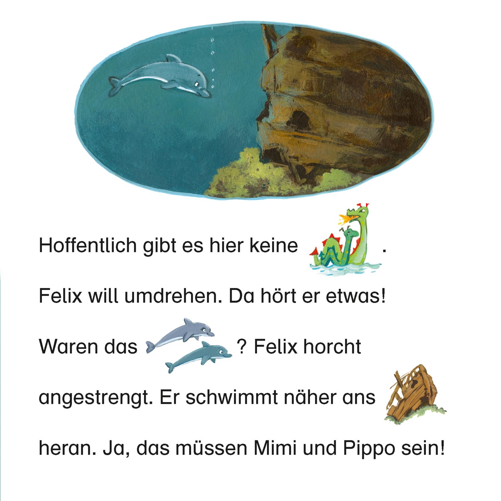 Der kleine Delfin ist traurig. Seine Freunde suchen einen geheimen Schatz, aber er darf nicht mitkommen. Doch dann geraten die Delfine in Gefahr und nur Felix kann ihnen helfen ...