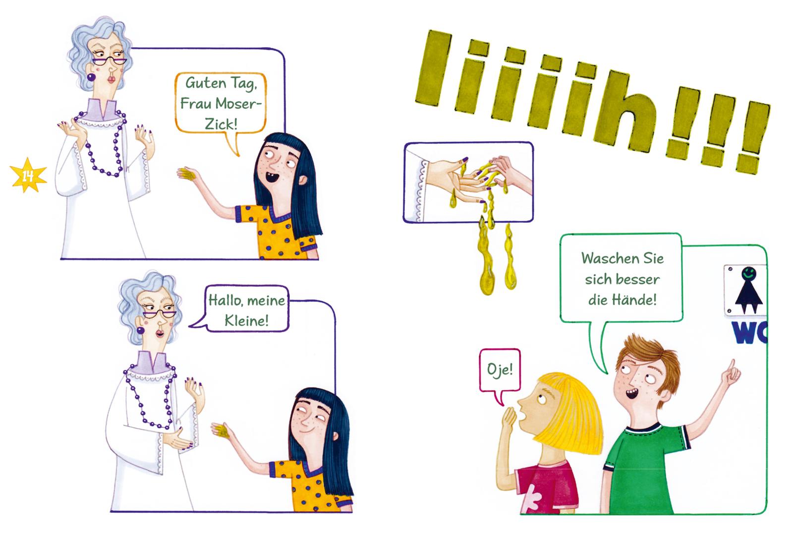 - Comicelemente, um die Sehgewohnheiten von Kindern zu berücksichtigen