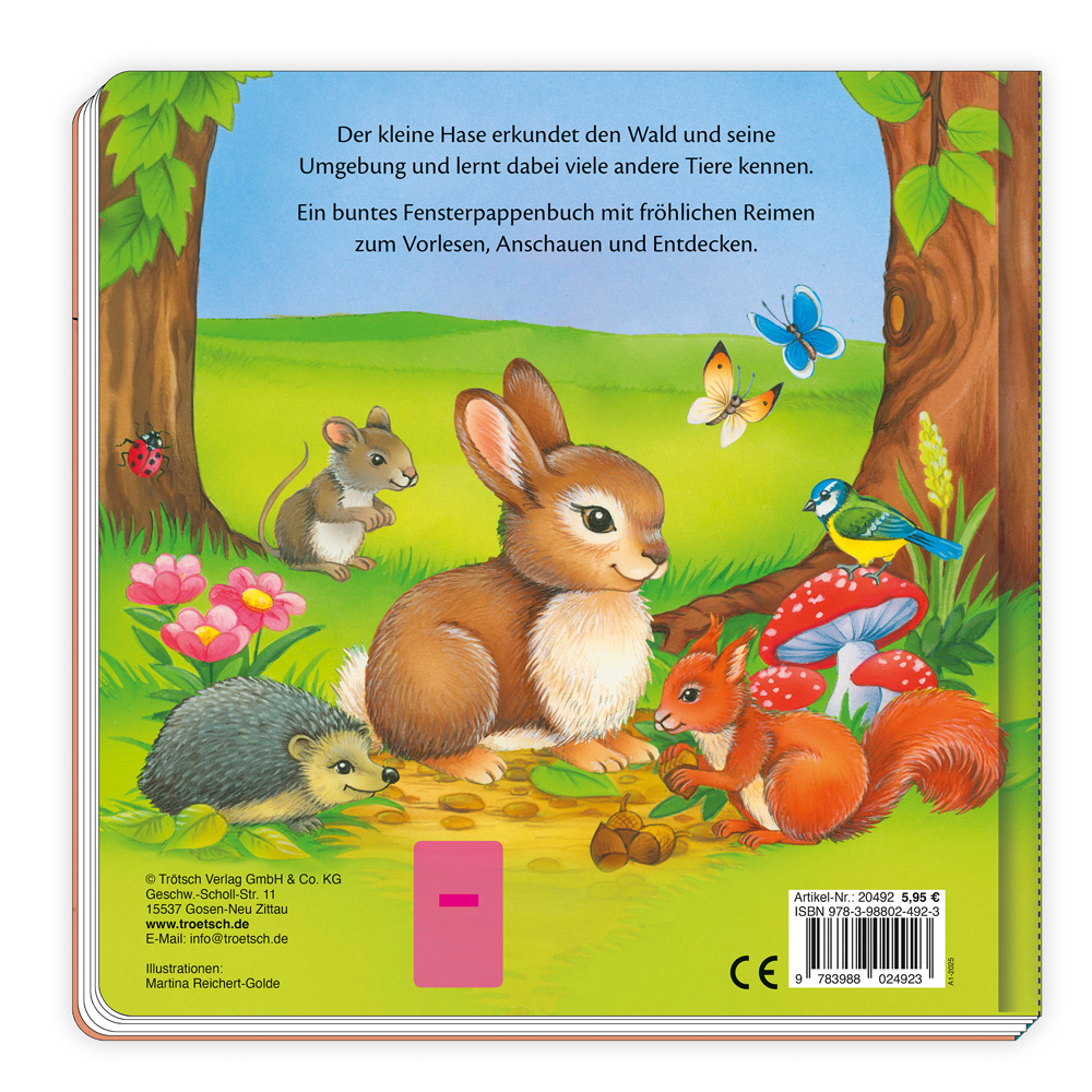 In diesem Pappenbuch erkundet der kleine Hase den Wald und seine Umlegung und lernt dabei viele Tiere kennen. Ein buntes Fensterbuch mit fröhlichen Reimen zum Vorlesen, Anschauen und Entdecken. Mit tollen Glanzeffekten auf dem Cover und den Innenseiten.