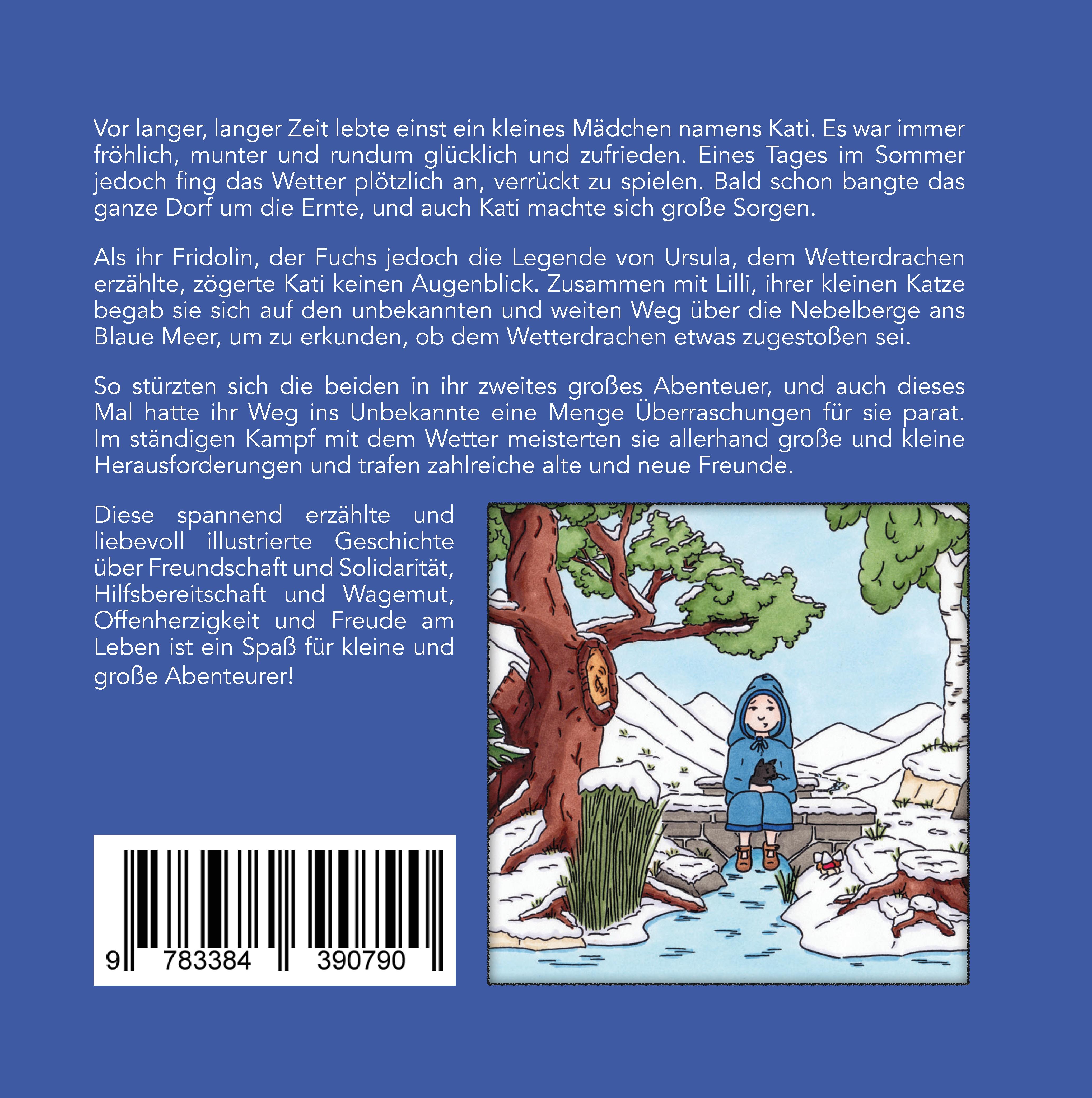 Vor langer, langer Zeit lebte einst ein kleines Mädchen namens Kati. Es war immer fröhlich, munter und rundum glücklich und zufrieden. Eines Tages im Sommer jedoch fing das Wetter plötzlich an, verrückt zu spielen. Bald schon bangte das ganze Dorf um die Ernte, und auch Kati machte sich große Sorgen.Als ihr Fridolin, der Fuchs jedoch die Legende von Ursula, dem Wetterdrachen erzählte, zögerte Kati keinen Augenblick. Zusammen mit Lilli, ihrer kleinen Katze begab sie sich auf den unbekannten und weiten Weg über die Nebelberge ans Blaue Meer, um zu erkunden, ob dem Wetterdrachen etwas zugestoßen sei.So stürzten sich die beiden in ihr zweites großes Abenteuer, und auch dieses Mal hatte ihr Weg ins Unbekannte eine Menge Überraschungen für sie parat. Im ständigen Kampf mit dem Wetter meisterten sie allerhand große und kleine Herausforderungen und trafen zahlreiche alte und neue Freunde.