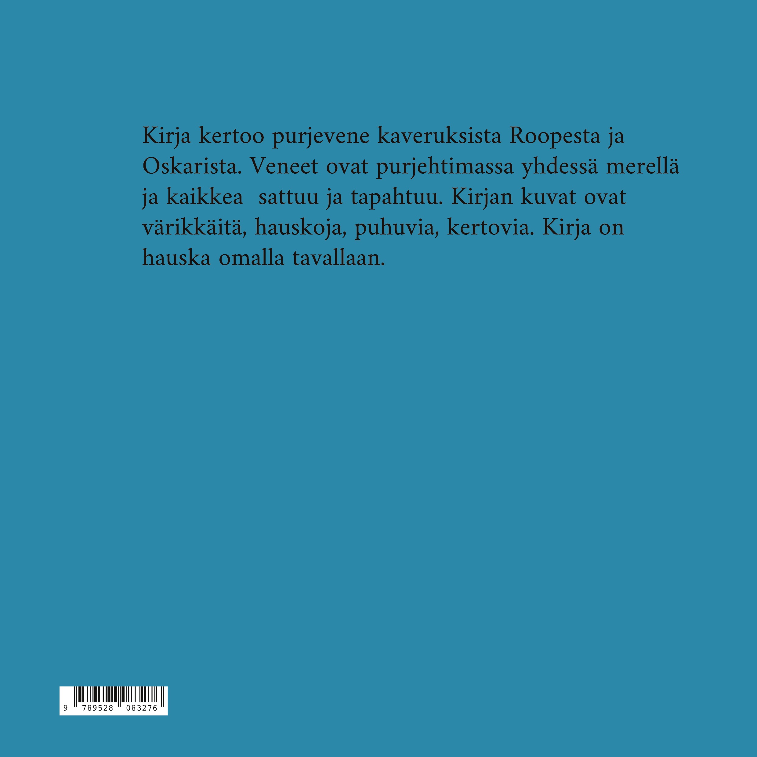 Kirja kertoo purjevene kaveruksista Roopesta ja Oskarista. Veneet ovat purjehtimassa yhdessä merellä ja kaikkea sattuu ja tapahtuu. Kirjan kuvat ovat värikkäitä, hauskoja, puhuvia, kertovia. Kirja on hauska omalla tavallaan.