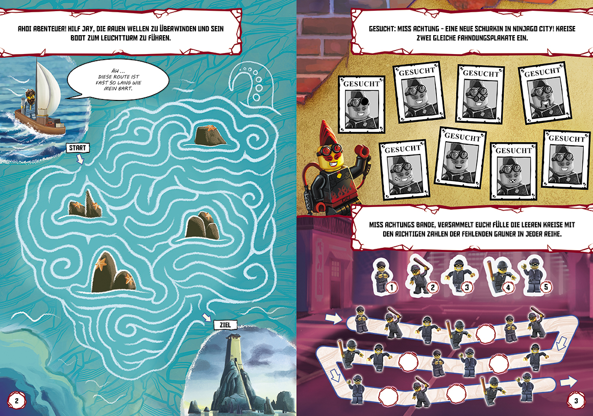 Ein spannendes Rätselbuch mit vielen abwechslungsreichen Herausforderungen für Knobelfans und alle, die LEGO NINJAGO lieben. Mit dem enthaltenen Miniset „Rapton und Speer“ können Geschichten nachgespielt werden. Neben einer aufregenden Geschichte und lustigen Comics, die dem typischen LEGO Humor treu bleiben, können außerdem wieder zahlreiche Rätsel gelöst werden.