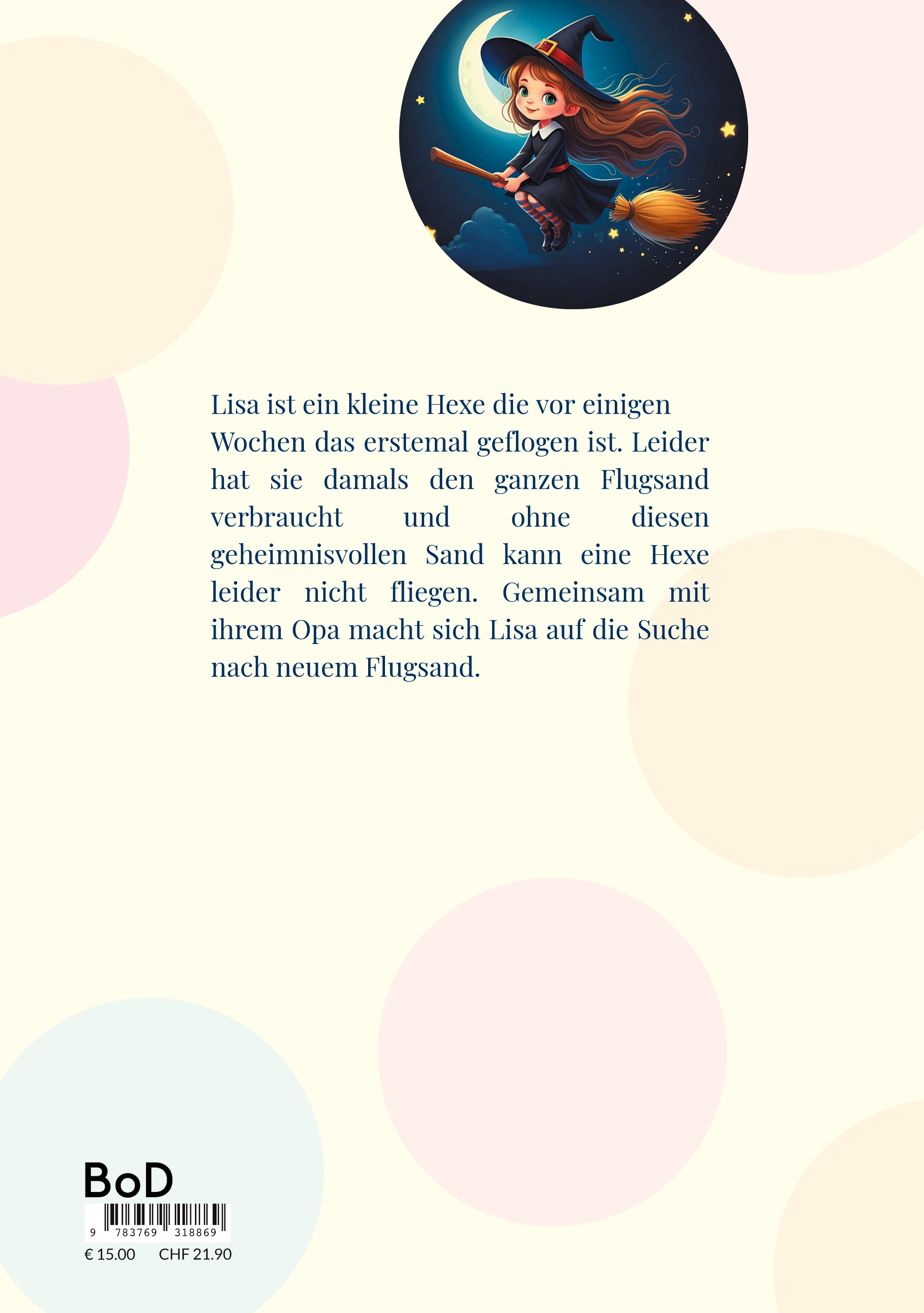 Lisa ist ein kleine Hexe die vor einigen Wochen das erstemal geflogen ist. Leider hat sie damals den ganzen Flugsand verbraucht und ohne diesen geheimnisvollen Sand kann eine Hexe leider nicht fliegen. Gemeinsam mit ihrem Opa macht sich Lisa auf die Suche nach neuem Flugsand.