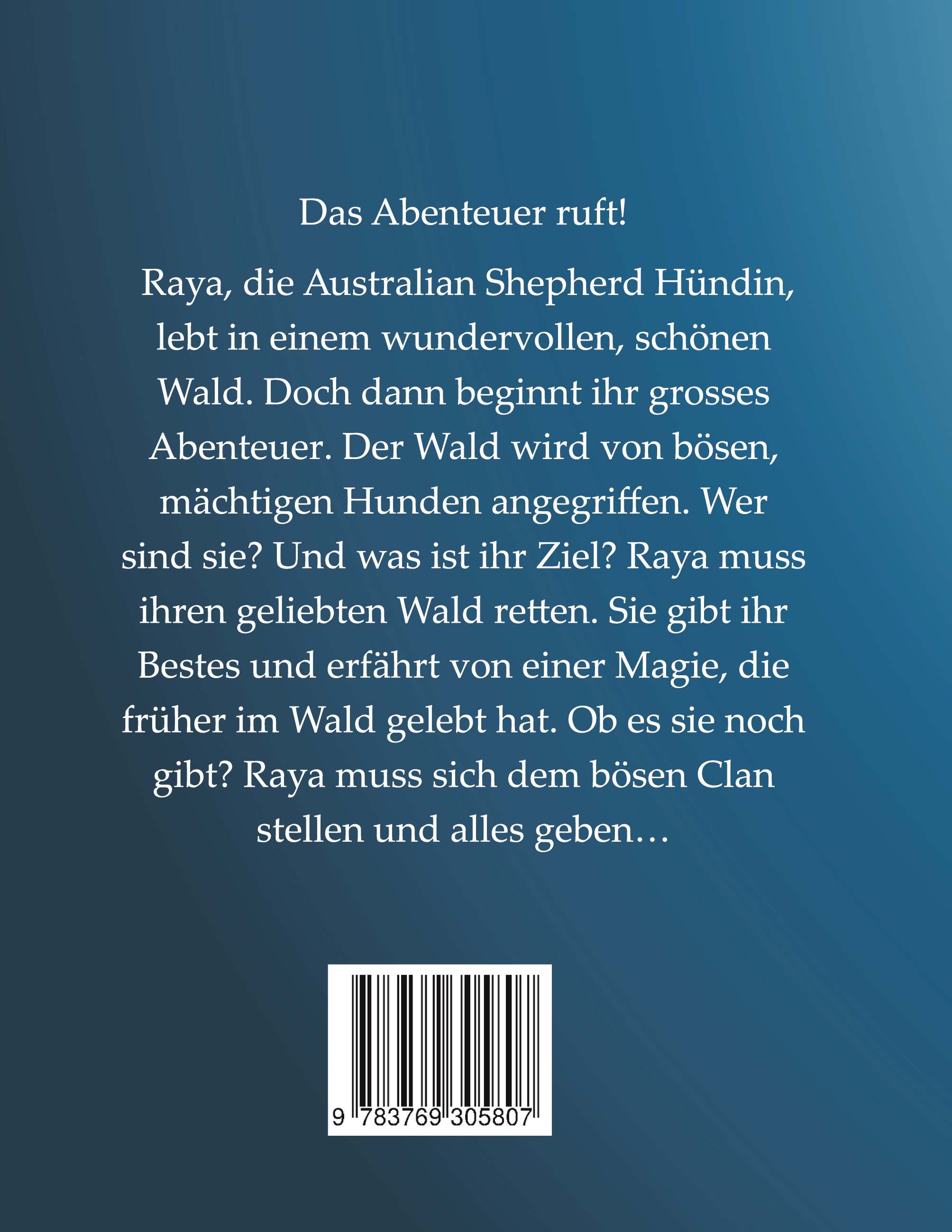 Das Abenteuer ruft! Raya, die Australian Sheperd Hündin, lebt in einem wundervollen, schönen Wald. Doch dann beginnt ihr grosses Abenteuer. Der Wald wird von bösen, mächtigen Hunden angegriffen. Wer sind sie? Und was ist ihr Ziel? Raya muss ihren geliebten Wald retten. Sie gibt ihr Bestes und erfährt von einer Magie, die früher im Wald gelebt hat. Ob es sie noch gibt? Raya muss sich dem bösen Clan stellen und alles geben...
