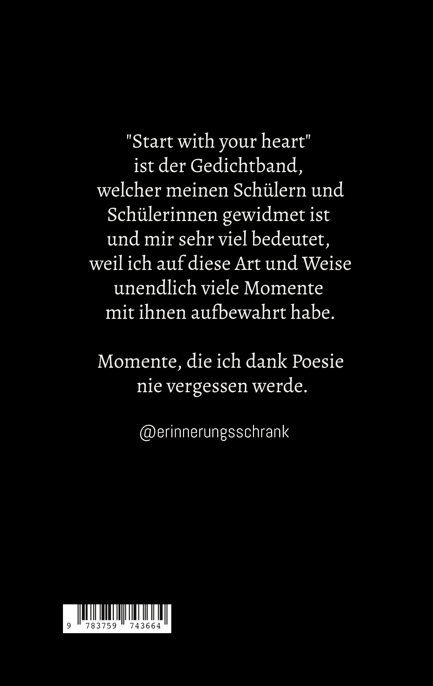 | Schlagworte | Coaching • Erinnerungen • Erinnerungsschrank • Gedichtband • Gedichte • Kinderlyrik • Lyrik • Momente • Mutmacher • Poesie • Prosa |