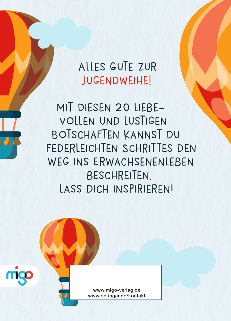 | Schlagworte | Erwachsen werden • Gastgeschenk • Geschenkbuch für Teenager • Geschenk für Jugendliche • geschenk unter 10 euro • glückwünsche zur jugendweihe • Jugendweihe Geschenk • Lebensweisheiten • Lustige und liebevolle Botschaften • Orientierungshilfe • Sprüche |