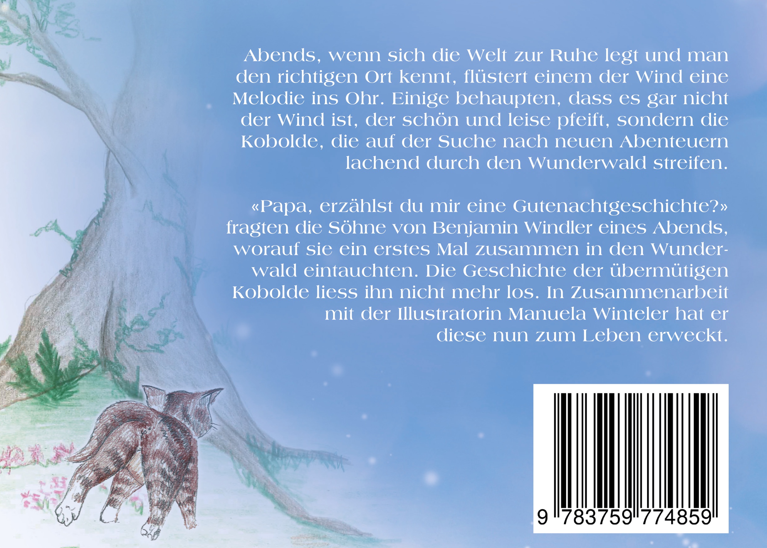 «Papa, erzählst du mir eine Gutenachtgeschichte?» fragten die Söhne von Benjamin Windler eines Abends, worauf sie ein erstes Mal zusammen in den Wunderwald eintauchten. Die Geschichte der übermütigen Kobolde liess ihn nicht mehr los. In Zusammenarbeit mit der Illustratorin Manuela Winteler hat er diese nun zum Leben erweckt.