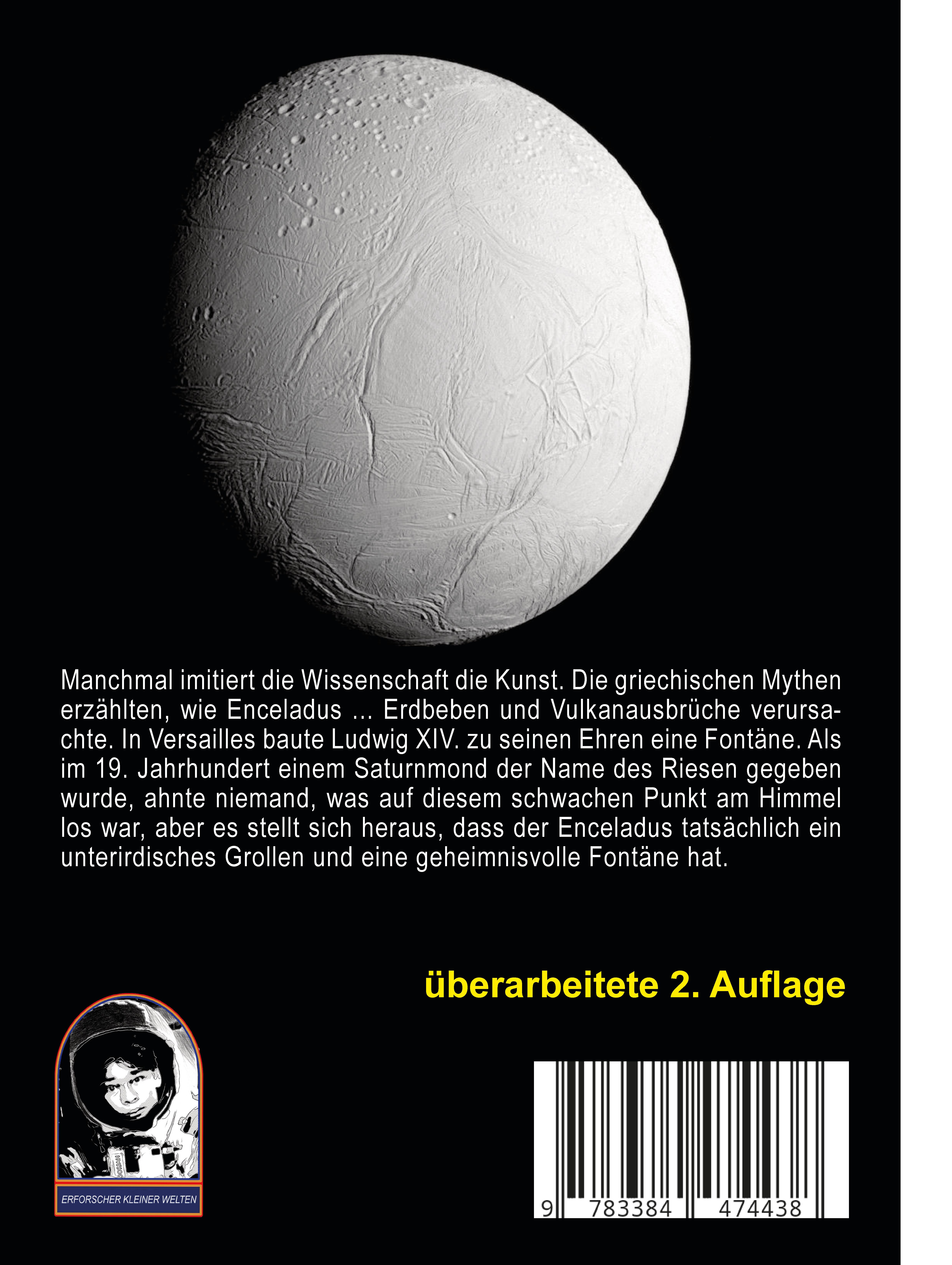 Neben dem Jupitermond Europa gilt der winzige, gerade 500 km große Saturnmond Enceladus heute als einer der aussichtsreichsten Kandidaten für außerirdisches Leben im Weltraum. Trotz der abgrundtiefen Kälte sprudeln an seinem Südpol lebendige Spaltenvulkane heißen Wasserdampf, der aus einem Ozean tief unter dem Eis stammen muss. Ein Island des Weltraums! Und dieser Ozean hat offenbar teilweise Badetemperatur.Den Voyager-Sonden erschien Enceladus wie ein frischer glatter Schneeball. Erst die Raumsonde Cassini bemerkte, wie außergewöhnlich dieser kleine Saturnmond ist. Woher nimmt er die Wärme, von der seine Vulkane ihre Energie beziehen? Sind die Substanzen in seinen Fontänen die Überreste komplexerer Moleküle? Regnet es, schwer vorstellbar, womöglich sogar Mikroben auf dieser Welt?Die Vorstellungen, die Planetologen und Mineralogen heute von diesem bemerkenswerten Himmelskörper haben, haben sich in den letzten Jahren stark gewandelt. Darum erscheint das vorliegende Buch - das fünfte in der Reihe "Erforscher kleiner Welten" - nun in einer umfassend aktualisierten Zweitauflage."Manchmal imitiert die Wissenschaft die Kunst. Die griechischen Mythen erzählten, wie Enceladus Erdbeben und Vulkanausbrüche verursachte. In Versailles baute Ludwig XIV. zu seinen Ehren eine Fontäne. Als im 19. Jahrhundert einem Saturnmond der Name des Riesen gegeben wurde, ahnte niemand, was auf diesem schwachen Punkt am Himmel los war, aber es stellt sich heraus, dass der Enceladus tatsächlich ein unterirdisches Grollen und eine geheimnisvolle Fontäne hat."Inhalt:1. Von SOTP zu Cassini-Huygens - Ein Überblick über die Entwicklung der Raumsonde Cassini mit ihrem Landegerät Huygens und ihre Schwierigkeiten bis zur Ankunft im Saturnsystem.2. Die saturnische Schneekanone - Zur Orientierung auf dem Saturnmond Enceladus und wie es sich anfühlt, auf der Oberfläche zu stehen. Die wesentlichen Größen werden behandelt.3. Der sechste Satellit - Zur Geschichte der Entdeckung und frühen Beobachtung des Enceladus als sechstem historisch bekannten Mond des Saturns.4. Omnia divisa in partes tres - Landschaften und besondere Sehenswürdigkeiten auf dem Enceladus.5. Island des Weltraums - Zur Zusammensetzung der Dampfwolken, die die aktiven Geysire des Enceladus in den Weltraum spucken, und ihre Bedeutung. Regnet es auf dem Enceladus womöglich Mikroben?6. Der gefrorene Gigant - Eine Übersicht über Aufbau und Zusammensetzung des Inneren dieses Saturnmondes.7. Der Biss in den Tigerschwanz - Über Schneefälle, Eisregen und einen nachfüllbaren Saturnring.8. Was folgt dem Ende der Cassini? - Noch ist keine konkrete Nachfolgemission in Arbeit, aber ESA und NASA haben Konzeptstudien vor Augen, die hier vorgestellt werden.