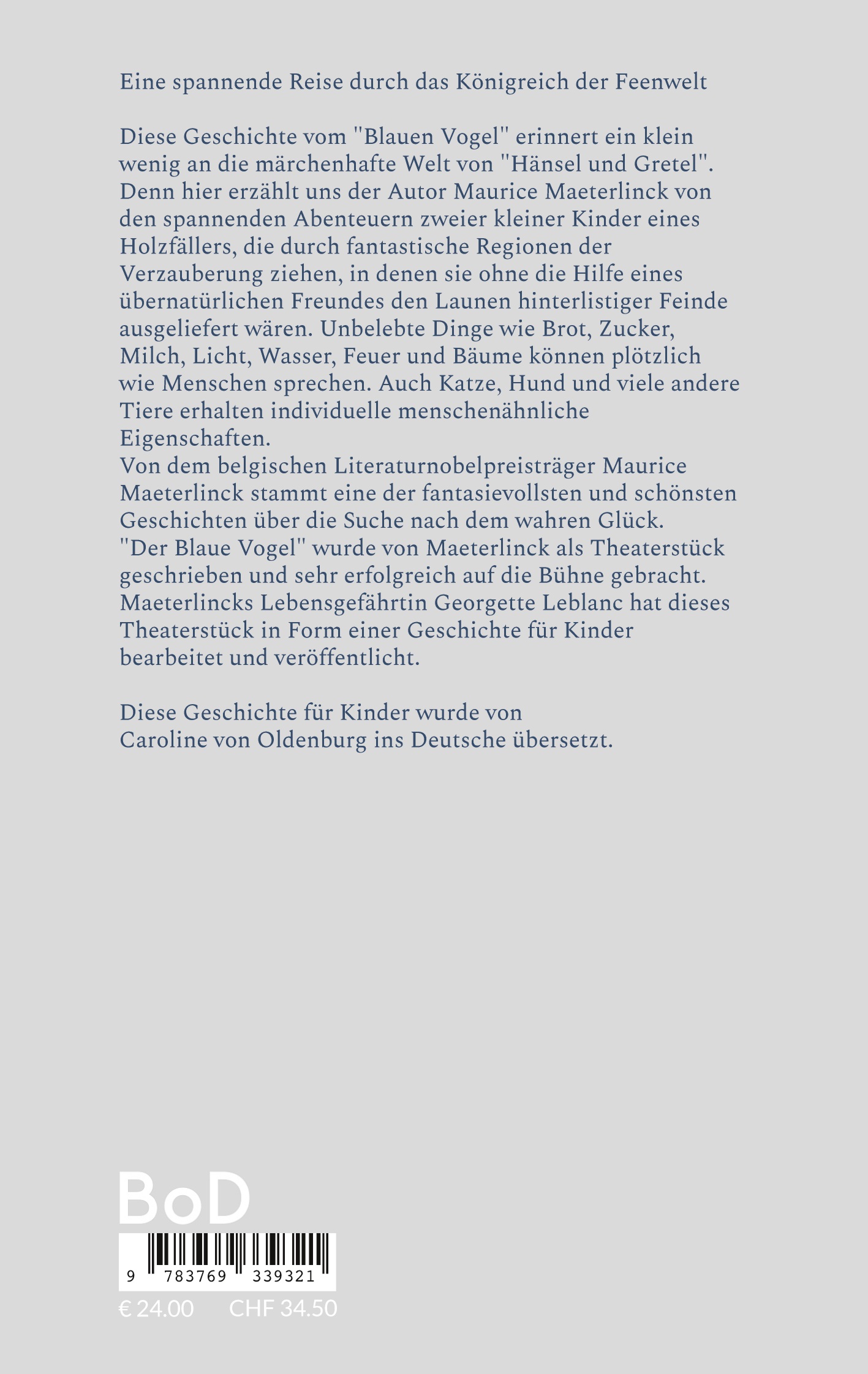 "Der Blaue Vogel" wurde von Maeterlinck als Theaterstück geschrieben und sehr erfolgreich auf die Bühne gebracht. Maeterlincks Lebensgefährtin Georgette Leblanc hat dieses Theaterstück in Form einer Geschichte für Kinder bearbeitet und veröffentlicht.