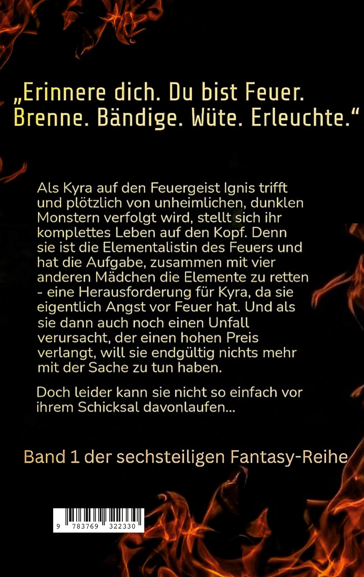 Als Kyra auf den Feuergeist Ignis trifft und plötzlich von unheimlichen, dunklen Monstern verfolgt wird, stellt sich ihr komplettes Leben auf den Kopf. Denn sie ist die Elementalistin des Feuers und hat die Aufgabe, zusammen mit vier anderen Mädchen die Elemente zu retten - eine Herausforderung für Kyra, da sie eigentlich Angst vor Feuer hat. Und als sie dann auch noch einen Unfall verursacht, der einen hohen Preis verlangt, will sie endgültig nichts mehr mit der Sache zu tun haben.