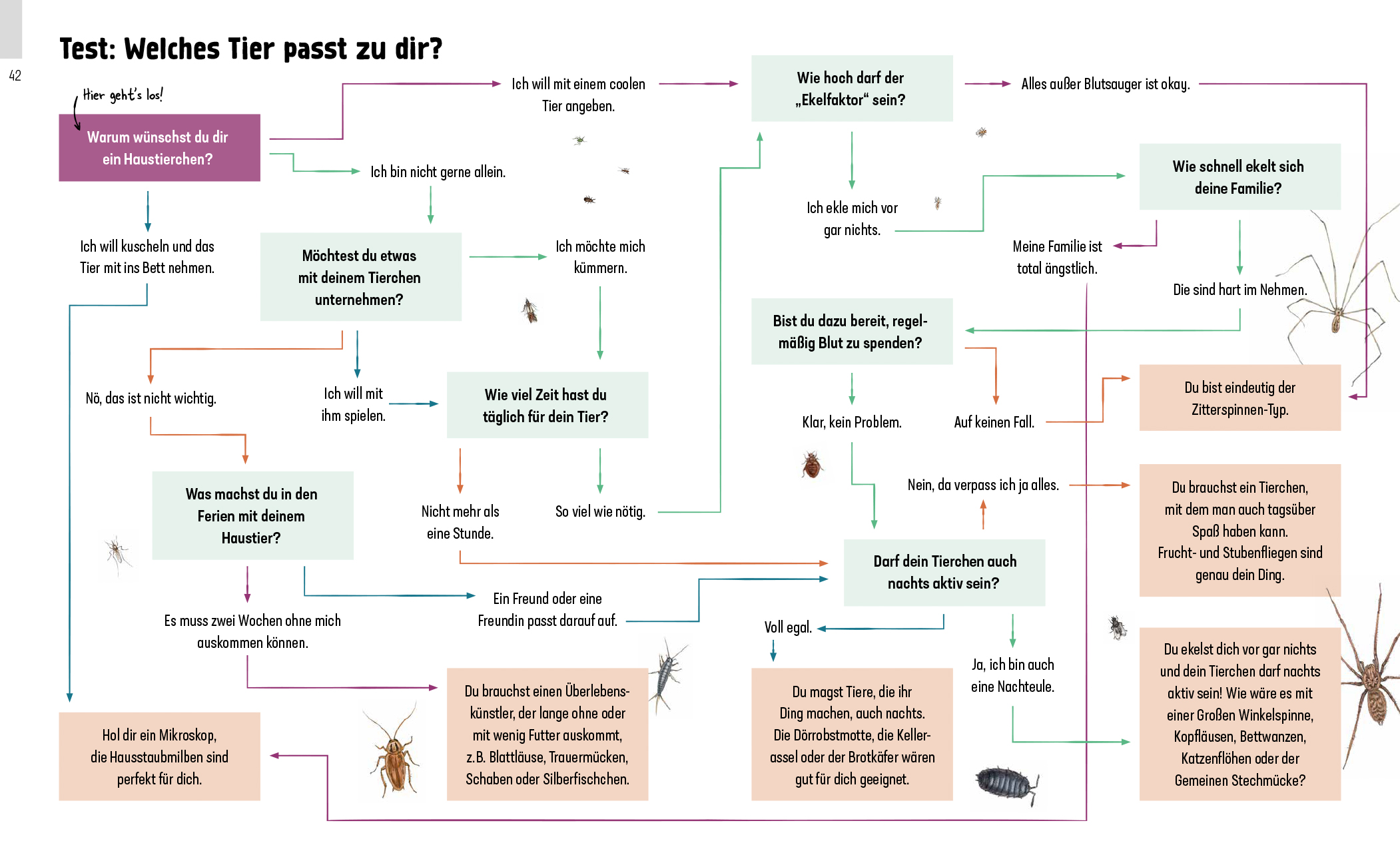 Mit detailgetreuen, realistischen Illustrationen hilft dieser Ratgeber, die kleinen Tierchen zu bestimmen. Die Steckbriefe liefern spannende, fachgerechte Informationen und geben darüber hinaus - immer mit einem Augenzwinkern - Tipps zur Haltung, Pflege, Fütterung und Beschäftigung. Eben wie ein richtiger Haustierratgeber. Und was darf da natürlich nicht fehlen? Ein wissenschaftlich (noch nicht ganz) anerkannter Test, um das passende "Haustierchen" für sich zu finden. Ob es ein normales Insekt, eine Spinne oder doch ein Körpertierchen wird?