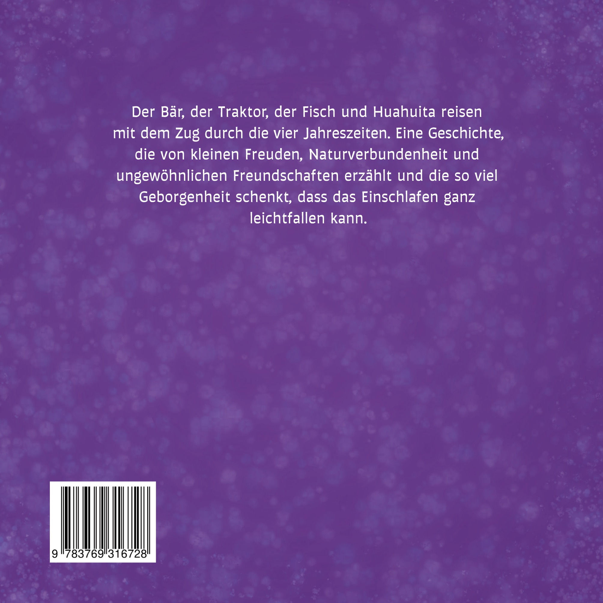 Der Bär, der Traktor, der Fisch und Huahuita reisen mit dem Zug durch die vier Jahreszeiten. Eine Geschichte, die von den kleinen Freuden, Naturverbundenheit und ungewöhnlichen Freundschaften erzählt und die so viel Geborgenheit schenkt, dass das Einschlafen ganz leichtfallen kann.