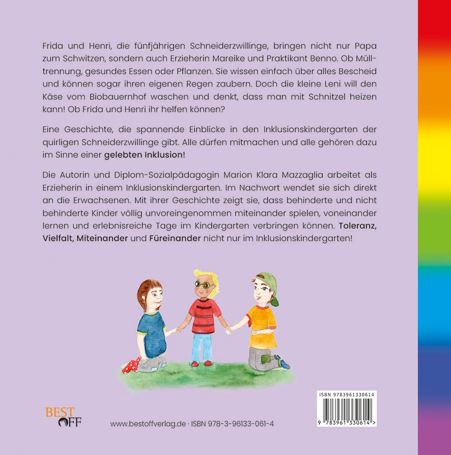 Eine Geschichte, die spannende Einblicke in den Inklusionskindergarten der quirligen Schneiderzwillinge gibt. Alle dürfen mitmachen und alle gehören dazu im Sinne einer gelebten Inklusion!