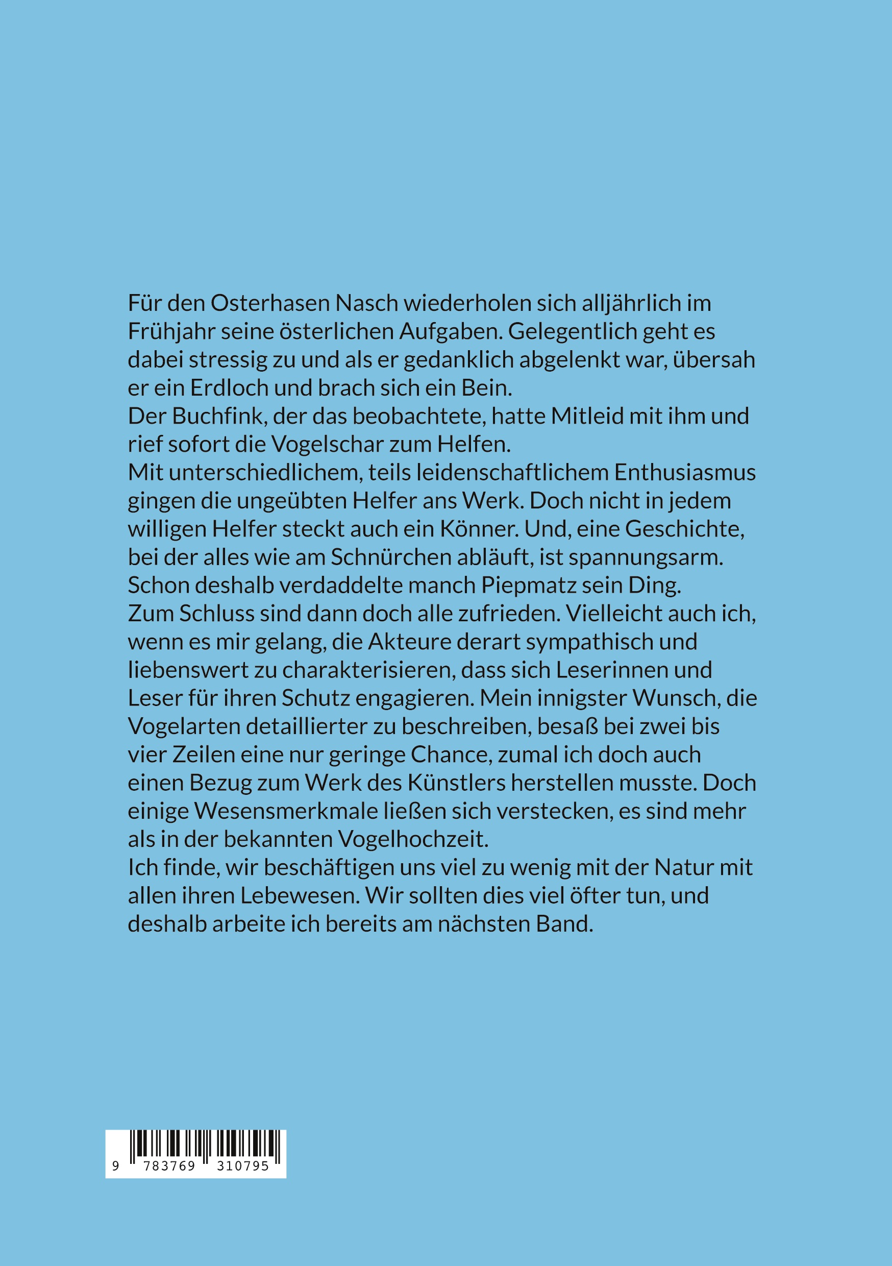 Ich finde, wir beschäftigen uns viel zu wenig mit der Natur mit allen ihren Lebewesen. Wir sollten dies viel öfter tun, und deshalb arbeite ich bereits am nächsten Band.