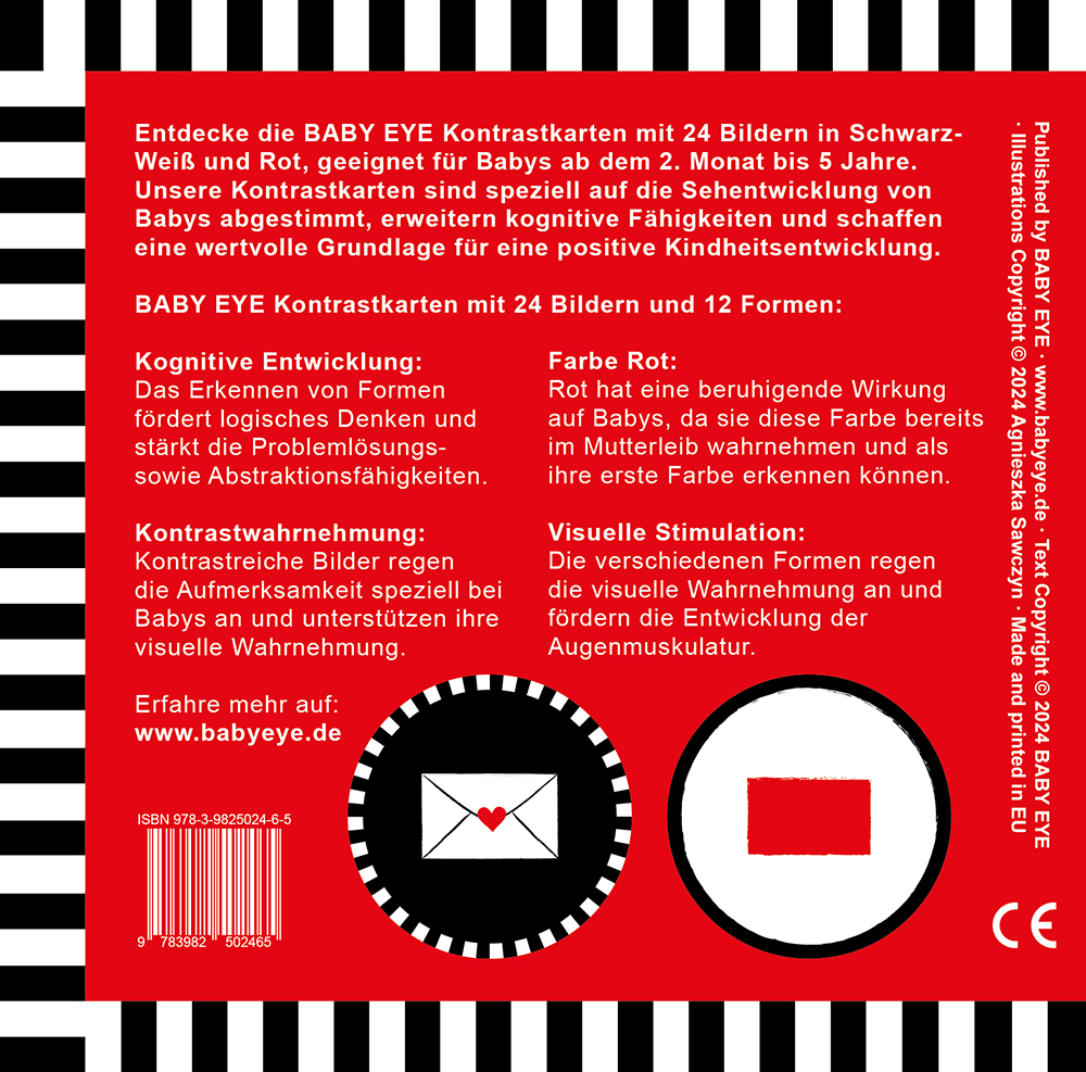 BABY EYE Kontrastkarten für Babys und Kinder: Band 2 – Kognitiv · Entwicklung durch Entwicklungspsychologie: 24 Bilder, 12 Formen · Schwarz-Weiß und Rot · Meine ersten Bilder · Montessori