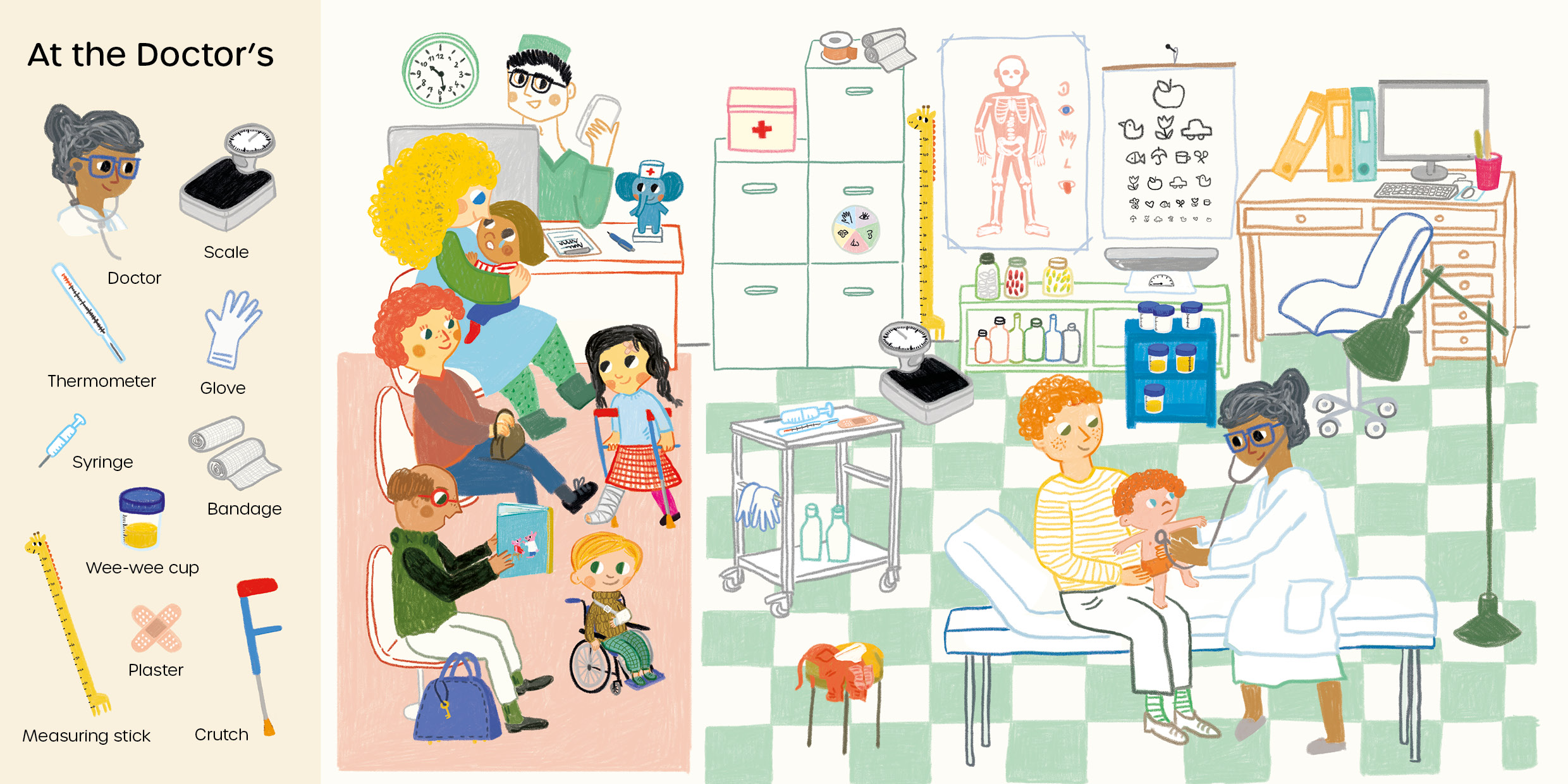 What should I wear today? What animals do I know at the zoo? Who will I meet at the playground, and what is for dinner? Every day is a learning adventure, whether at home, kindergarten, or out and about! This book invites children to explore their world, discover familiar objects from daily life, and learn their names through playful interaction. Vibrant scenes from the supermarket, doctor's office, park, and bedroom spark children's imaginations, encouraging them to create their own stories. Große Abenteuer für kleine Leser - entdecke und benenne die Welt um dich herum!
