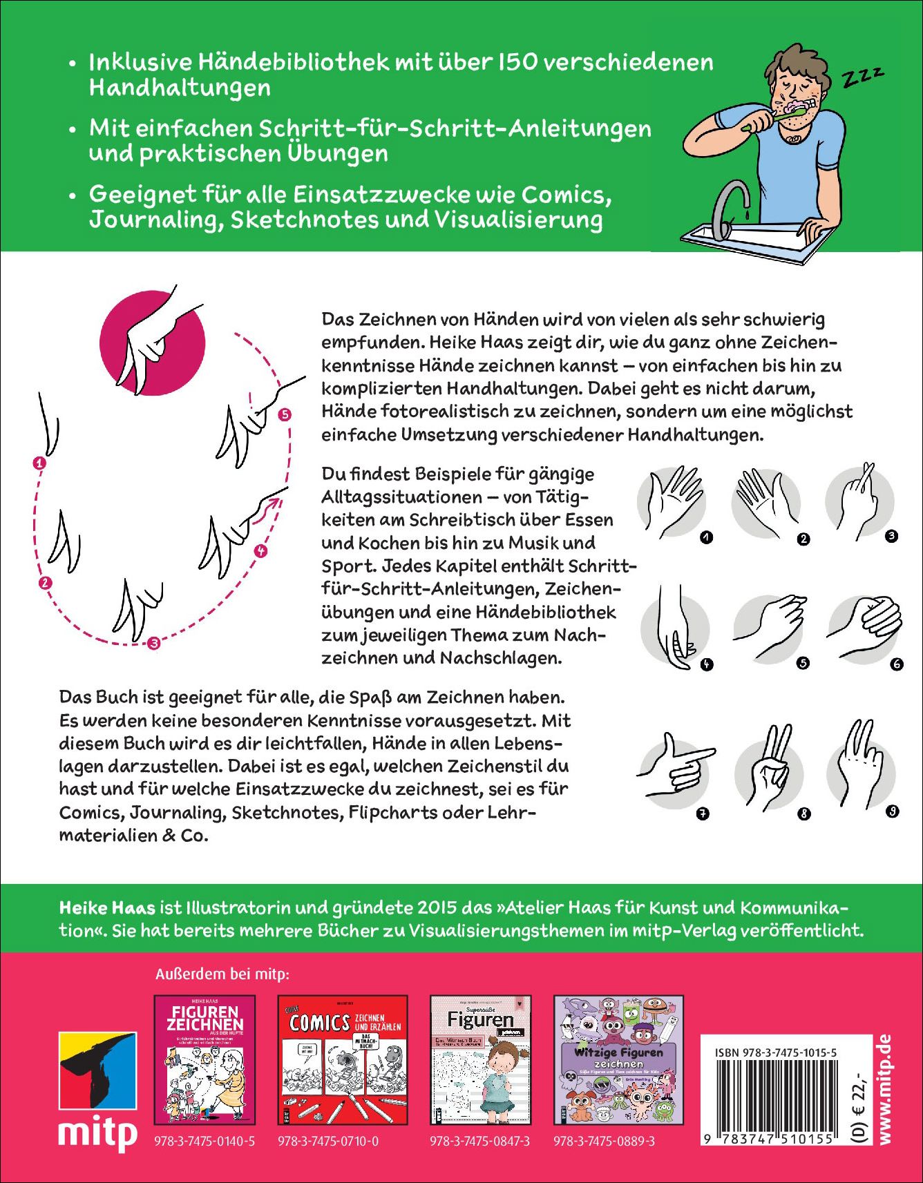 | Schlagworte | Anatomie der Hände • Buch • Bücher • Comicfiguren Hände • Comic-Kunst • Comic-Zeichenkurs • Comic zeichnen • einfache Zeichenübungen • Figuren zeichnen • Handdetails zeichnen • Hände für Comics • Hände im Comicstil • Hände im Manga-Stil • Hände skizzieren • Hände und Finger zeichnen • hände zeichnen • Hände zeichnen Anleitung • Hände zeichnen leicht gemacht • Hände zeichnen Tipps • Handillustration • Handposen zeichnen • Handstudien • Handzeichnungen • Heike Haas • Illustration • kreative Illustration • kreatives Zeichnen • mitp • Proportionen der Hände • Sketchnote-Anleitung • Sketchnotes • Skizzenbuch Hände • Zeichenanleitung für Hände • Zeichenbuch Hände • Zeichenideen für Anfänger • Zeichenschule • Zeichentechniken • Zeichenübungen • Zeichnen für Anfänger • Zeichnen Grundlagen • Zeichnen lernen • Zeichnen Schritt für Schritt • zeichnen wie ein profi |