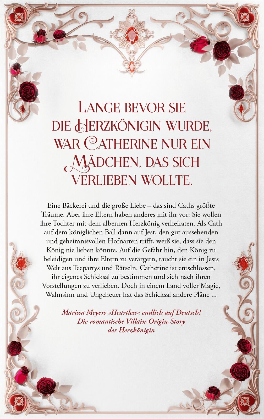 Eine Bäckerei und die große Liebe - das sind Caths größte Träume. Aber ihre Eltern haben anderes mit ihr vor: Sie wollen ihre Tochter mit dem Herzkönig verheiraten. Als Cath auf dem königlichen Ball dann auf Jest, den gut aussehenden und geheimnisvollen Hofnarren trifft, weiß sie, dass sie den König nie lieben könnte. Catherine ist entschlossen, ihr eigenes Schicksal zu bestimmen und sich nach ihren Vorstellungen zu verlieben. Doch in einem Land voller Magie, Wahnsinn und Ungeheuer hat das Schicksal andere Pläne ...