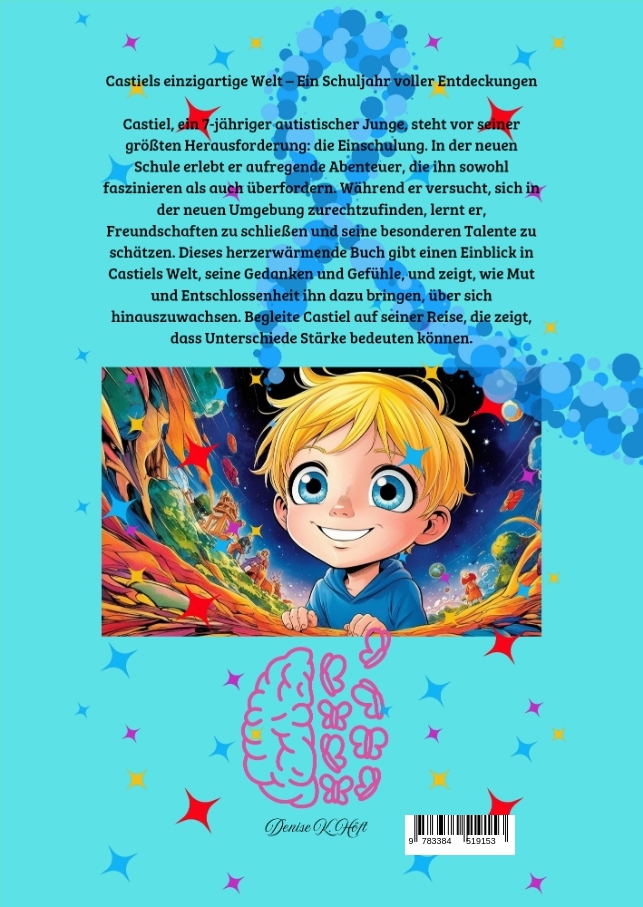 Castiel s einzigartige Welt - Ein Schuljahr voller EntdeckungenCastiel, ein 7-jähriger autistischer Junge, steht vor seiner größten Herausforderung: die Einschulung. In der neuen Schule erlebt er aufregende Abenteuer, die ihn sowohl faszinieren als auch überfordern. Während er versucht, sich in der neuen Umgebung zurechtzufinden, lernt er, Freundschaften zu schließen und seine besonderen Talente zu schätzen. Dieses herzerwärmende Buch gibt einen Einblick in Castiels Welt, seine Gedanken und Gefühle, und zeigt, wie Mut und Entschlossenheit ihn dazu bringen, über sich hinauszuwachsen. Begleite Castiel auf seiner Reise, die zeigt, dass Unterschiede Stärke bedeuten können.Das Buch kann Eltern, Lehrern und Mitschülern helfen, den Schulalltag von autistischen Kindern besser zu verstehen. Es bietet praktische Tipps und Einsichten, die die Integration erleichtern und zu einem harmonischeren Miteinander im Schulumfeld führen können.