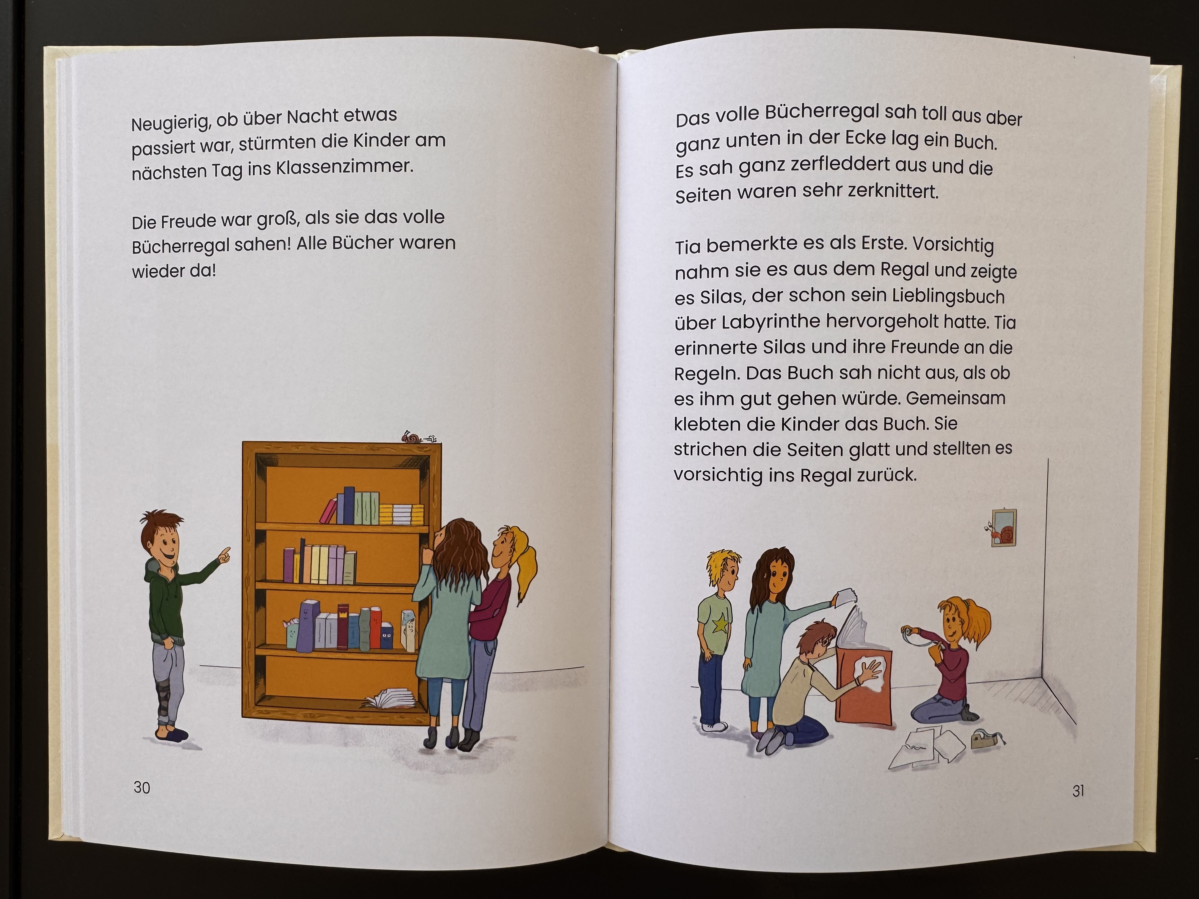 Das Buch eignet sich hervorragend zum Vorlesen oder Selbstlesen für Schulkinder und bietet eine wunderbare Gelegenheit, das Thema Wertschätzung von Büchern sowohl zu Hause als auch im schulischen Kontext zu besprechen.