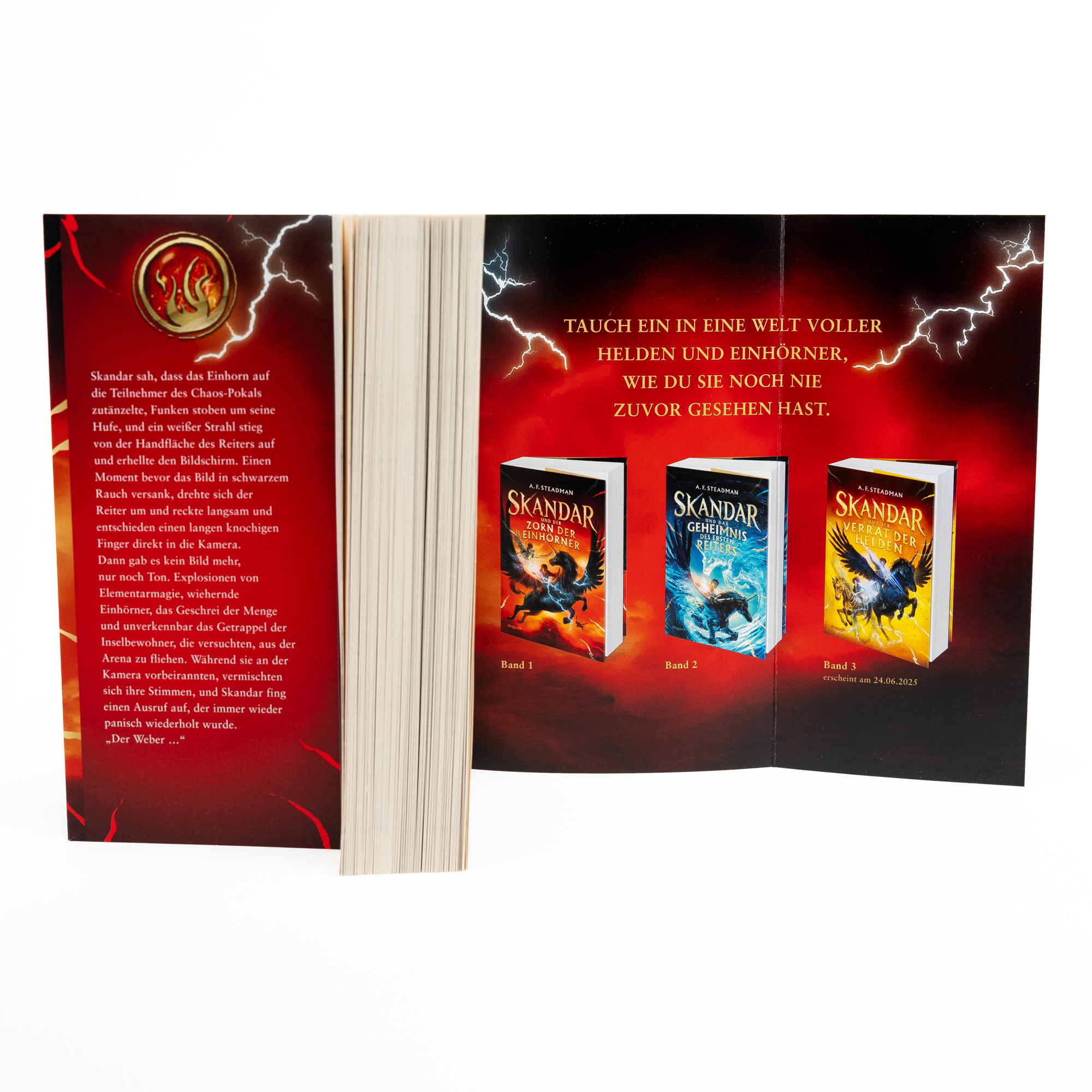 Wie jedes Jahr verfolgen alle das große Einhornrennen und sind fasziniert von den blutrünstigen Wesen, die gebändigt von ihren Reiterinnen und Reitern durch die Lüfte jagen und sich mit elementarer Magie bekämpfen. Doch dann wird das Einhorn, das als Sieger aus dem Rennen hervorgeht, von einem mysteriösen Fremden entführt: dem Weber. Kurz darauf kommt Skandar auf die Einhorninsel, wo er seine Ausbildung zum Reiter beginnen darf. Sein Einhorn und er tragen jedoch die Markierung des fünften Elements - genau wie der Weber, weshalb es als Todeselement bekannt und streng verboten ist! Was, wenn Skandar gar nicht der Held in seiner Geschichte ist, sondern der Bösewicht?