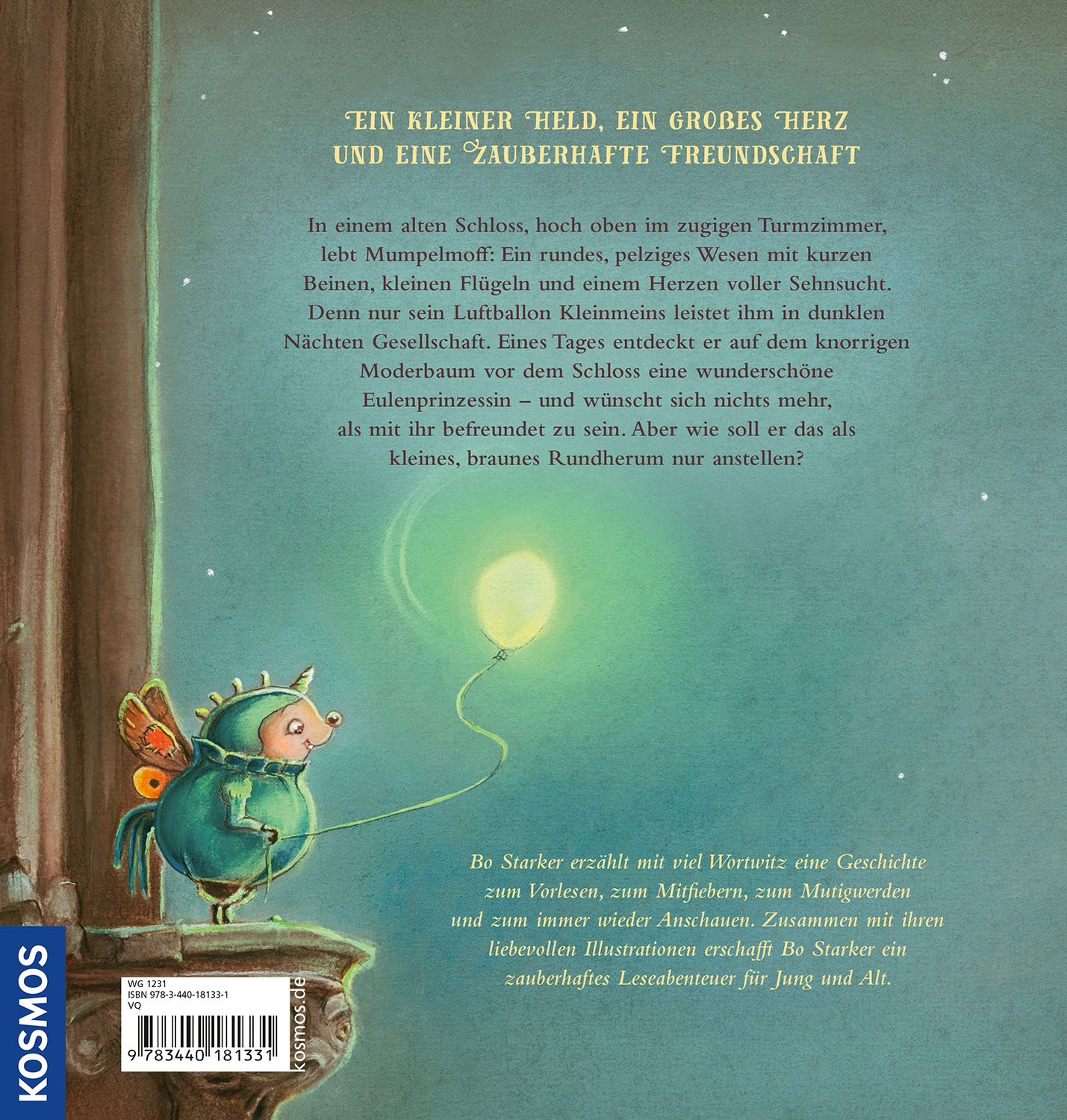 Mumpelmoff lebt einsam im Morl-Haus und sehnt sich nach echter Freundschaft. Als er die Eulenprinzessin trifft, glaubt er, sie nur durch immer neue, ausgefallene Kostüme beeindrucken zu können. Doch jedes Mal flieht sie vor ihm. Erst als ein Sturm seinen stillen Begleiter Luftballon Kleinmeins entführt, begibt sich Mumpelmoff auf eine abenteuerliche Reise. Mit der Hilfe einer Zauberfee entdeckt er, dass er nicht durch Verkleidungen, sondern durch das, was ihn einzigartig macht, wahrhaftig besonders ist. Dieses liebevolle Abenteuer über Mut, Selbstfindung und echte Freundschaft wird von zauberhaften, vierfarbigen Illustrationen begleitet, die eine nostalgische Welt lebendig werden lassen – kunstvoll und mit viel Liebe zum Detail von Künstlerin Bo Starker gestaltet.