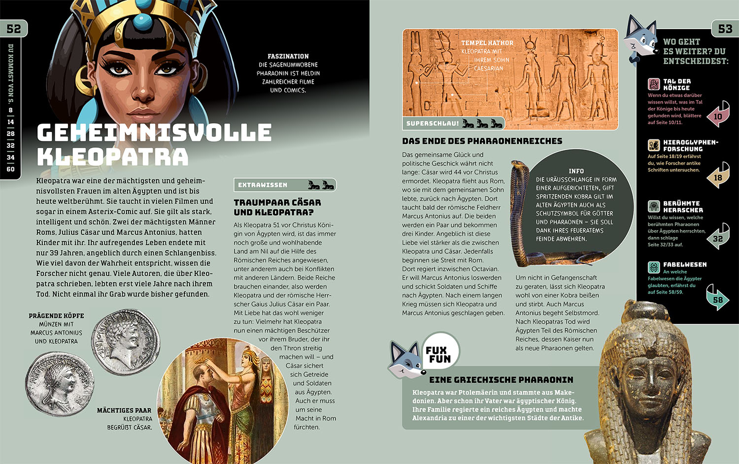 Das Sachbuch entführt junge Entdecker auf eine spannende Reise durch die faszinierende Welt der Pyramiden, Hieroglyphen und antiken Ausgrabungen. Im Stil eines „Choose-Your-Own-Adventure“ können die Leser selbst entscheiden, was sie interessiert und durch das Buch springen, um mehr über die Geschichte und Geheimnisse vergangener Kulturen zu erfahren. Dieser interaktive Ansatz ermöglicht es Kindern ab acht Jahren, das Wissen spielerisch zu vertiefen und ihre Neugier zu wecken.