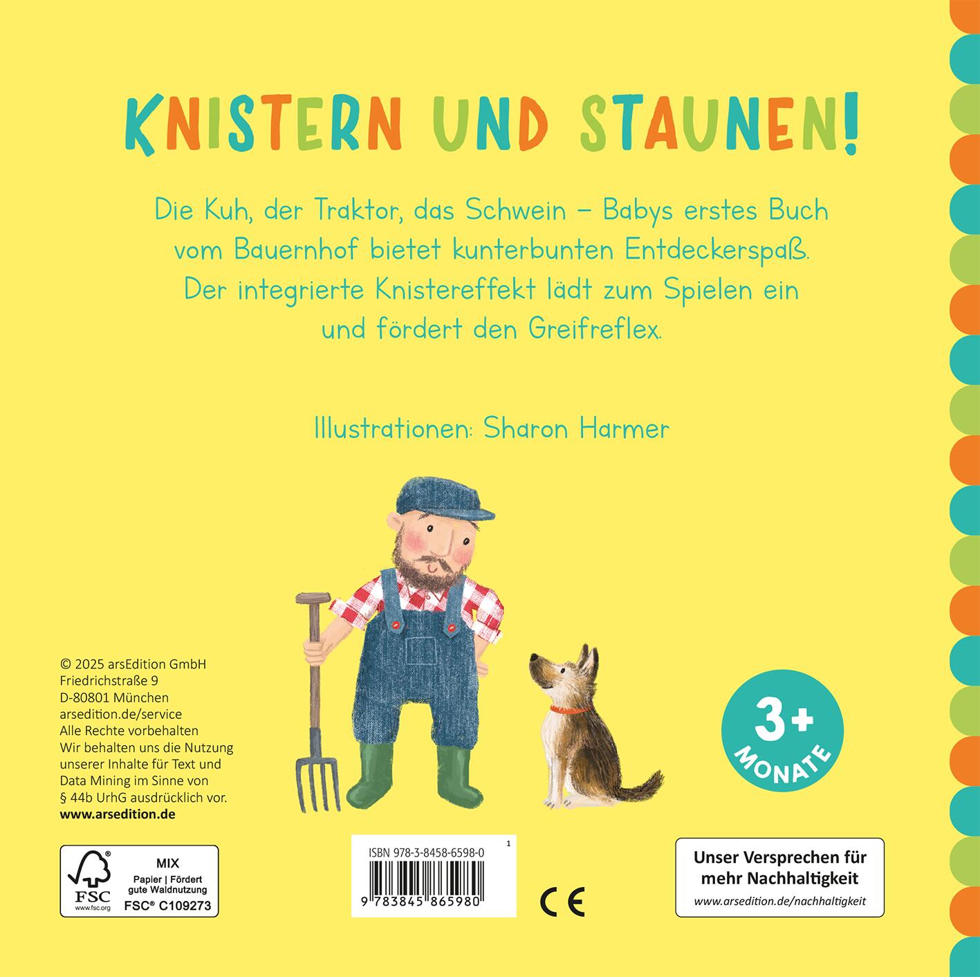 Ab dem dritten Lebensmonat beginnen Babys bewusst nach Dingen zu greifen, und erobern sich so Stück für Stück die Welt um sie herum. Der im Buchumschlag integrierte Knistereffekt fördert spielerisch den Tastsinn und die Hand-Auge-Koordination. Die farbenfrohen Illustrationen rund um das Lieblingsthema Bauernhof lassen Babys Augen strahlen und bieten ersten Entdeckerspaß.