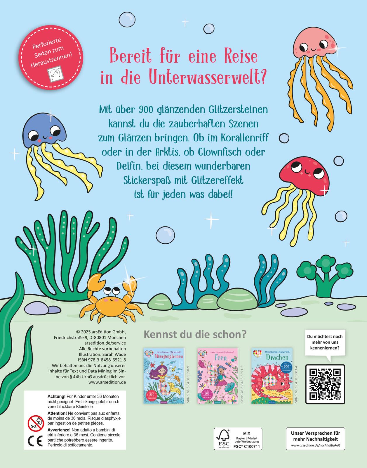 Mit über 900 glänzenden Glitzersteinen kannst du die zauberhaften Szenen zum Glänzen bringen. Ob im Korallenriff oder in der Arktis, ob Clownfisch oder Delfin, bei diesem wunderbaren Stickerspaß mit Glitzereffekt ist für jeden was dabei!