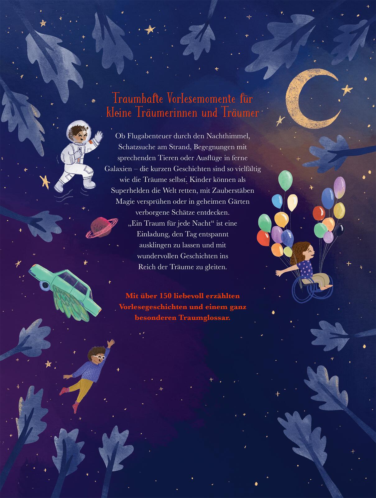 Was möchtest du heute Nacht träumen? In "Ein Traum für jede Nacht" findet ihr jeden Abend die perfekte Geschichte, um sanft ins Traumland zu reisen. Mit über 150 liebevoll erzählten Vorlesegeschichten und einem besonderen Traumglossar lädt dieses Vorlesebuch Kinder ab 4 Jahren dazu ein, ihre ganz persönlichen Traumwelten zu entdecken.
