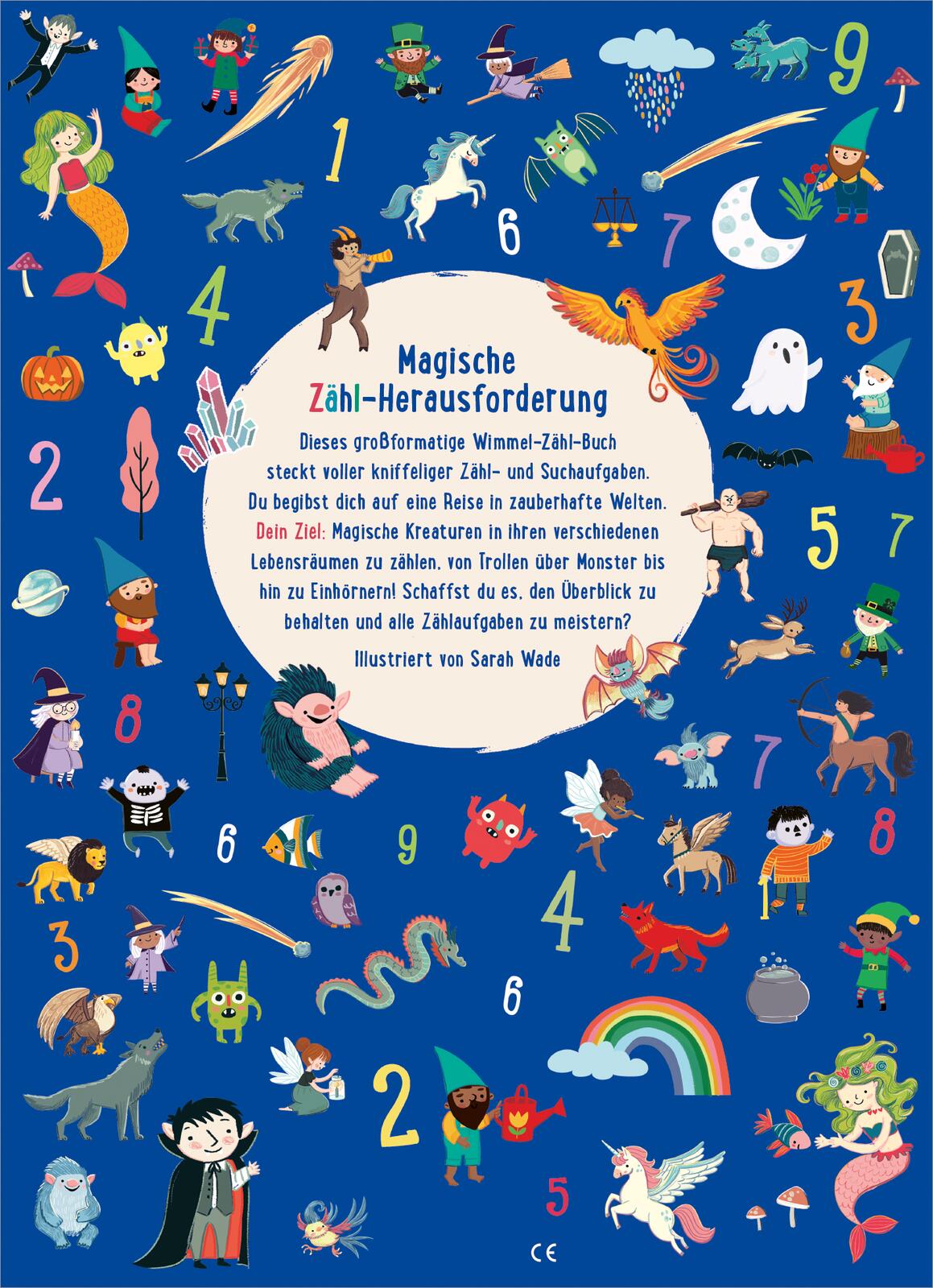 Dieses großformatige Wimmel-Zähl-Buch steckt voller Zähl- und Suchaufgaben, die dich herausfordern. Du begibst dich auf eine Reise in ganz verschiedene Zauberwelten. Dein Ziel: Alle Zauberwesen in ihren verschiedenen Lebensräumen zu zählen! Schaffst du es, den Überblick zu behalten und alle Zählaufgaben zu meistern?