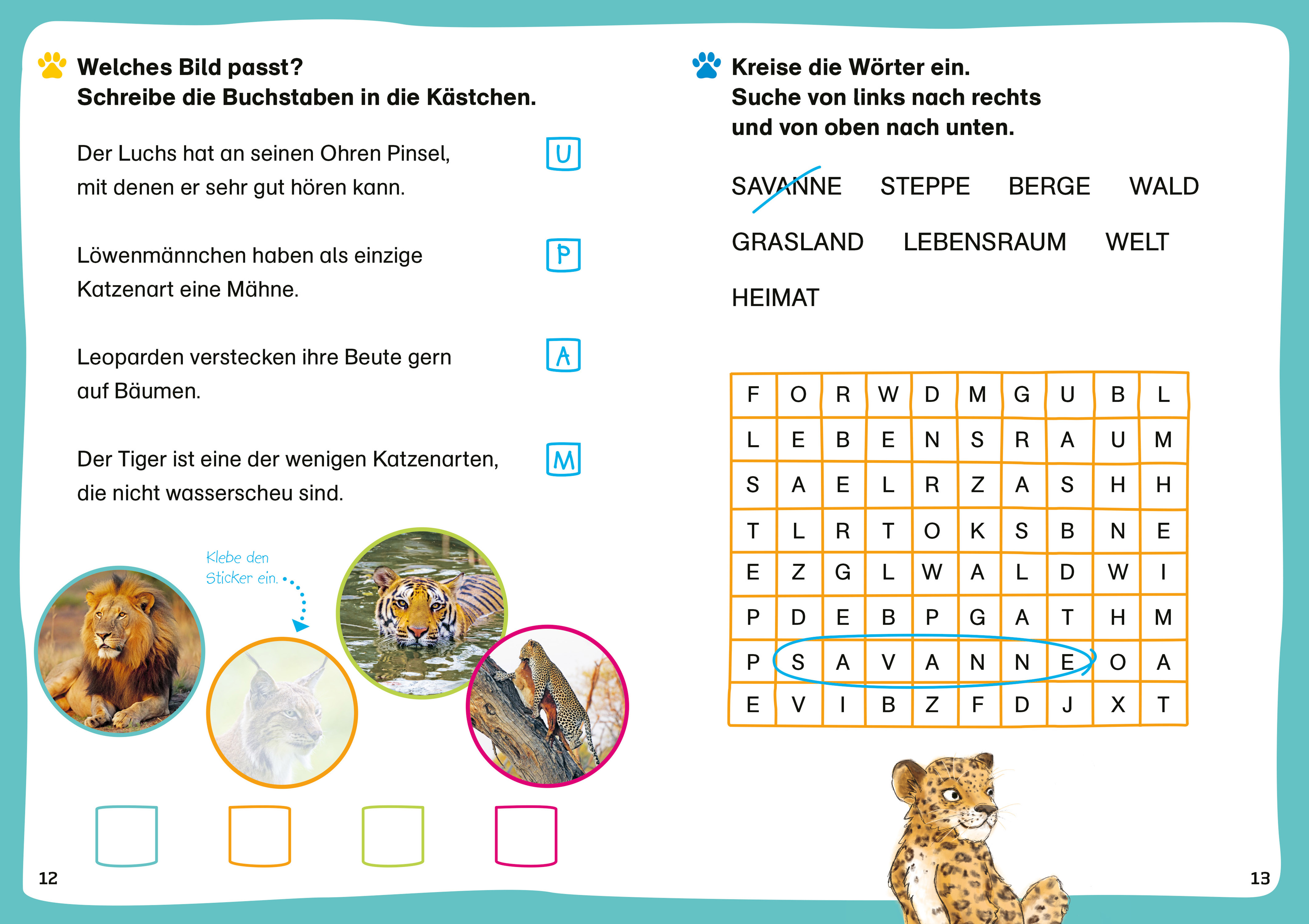 | Schlagworte | 1.Klasse • 2.Klasse • Deutsch • Deutschrätsel • ErstesLesen • Geparden • Grundschule • Jäger • Lebensraum • Leoparden • Lernen • Lernheft • Lernhilfe • Lernrätsel • Lernspiele • Leseheft • Leserätsel • Leseübung • Löwen • MitbringselErstleser • Rätsel • Rätselheft • Rätseln • Raubkatzen • Sticker • Tiger • üben • Übungsheft • WASISTWAS |