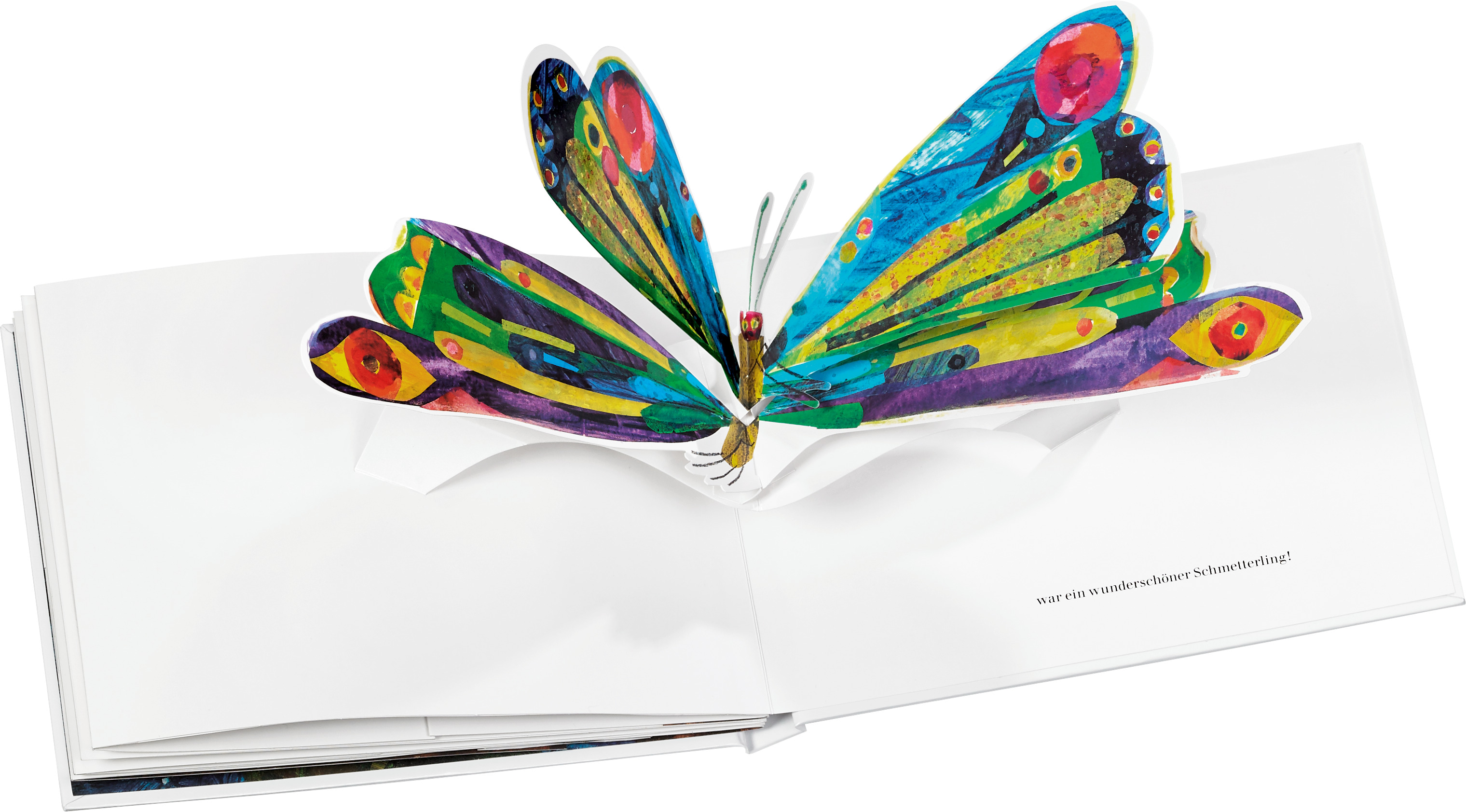 Die kleine Raupe Nimmersatt besticht nicht zuletzt durch ihre farbenfrohen collageartigen Illustrationen und ihre besondere Ausstattung mit zum Teil verkürzten Seiten und Lochstanzungen. Seit Jahrzehnten ist sie ein Klassiker der Kinderliteratur und mit über 50 Millionen Exemplaren eines der meistverkauften Bilderbücher der Welt.In dieser aufwendig gestalteten Pop-up-Ausgabe bewegt sich die Raupe über die Seite, hat viele Löcher geknabbert und am Ende fliegt dem Betrachter der wunderschöne Schmetterling förmlich entgegen. Ein Prachtband für alle Raupenfans! "Achtung! Nicht für Kinder unter drei Jahren geeignet. Enthält verschluckbare Teile."