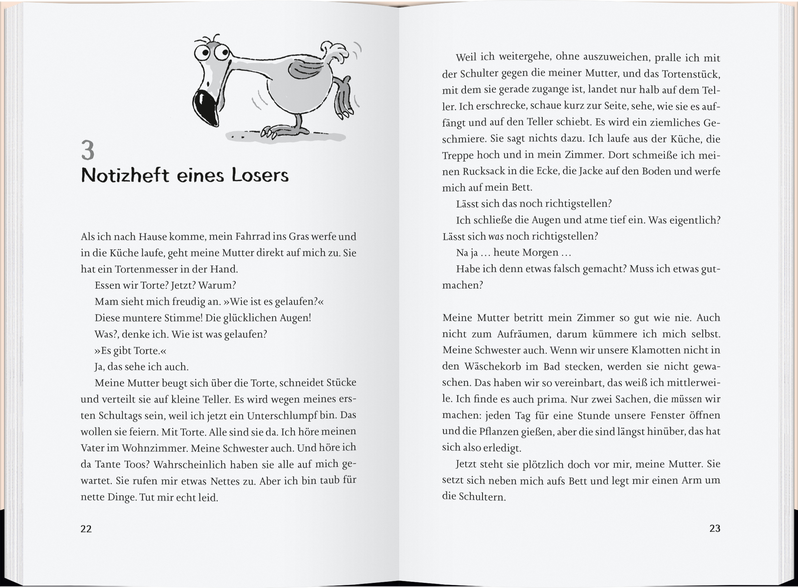 | Schlagworte | Band • Baumhaus • Erste Liebe • Erzählung • Familie • Fantasiefreund • Freundschaft • Kinderbuch • Klasse • Klassenfete • Mobbing • Musik machen • Roman • Rückzug • Sprachstörung • Stottern • Vogel |