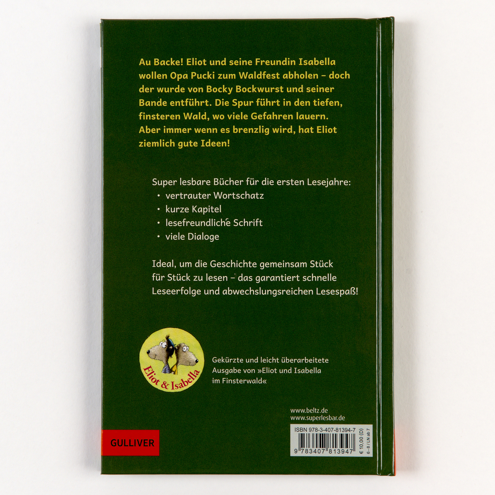 Das spannende Schatzsuche-Abenteuer "Eliot und Isabella im Finsterwald" - gekürzt und arrangiert als super lesbare Geschichte für die ersten Lesejahre. Für Kinder zwischen 6 und 8 Jahren mit einem Leseniveau von 7 Jahren.