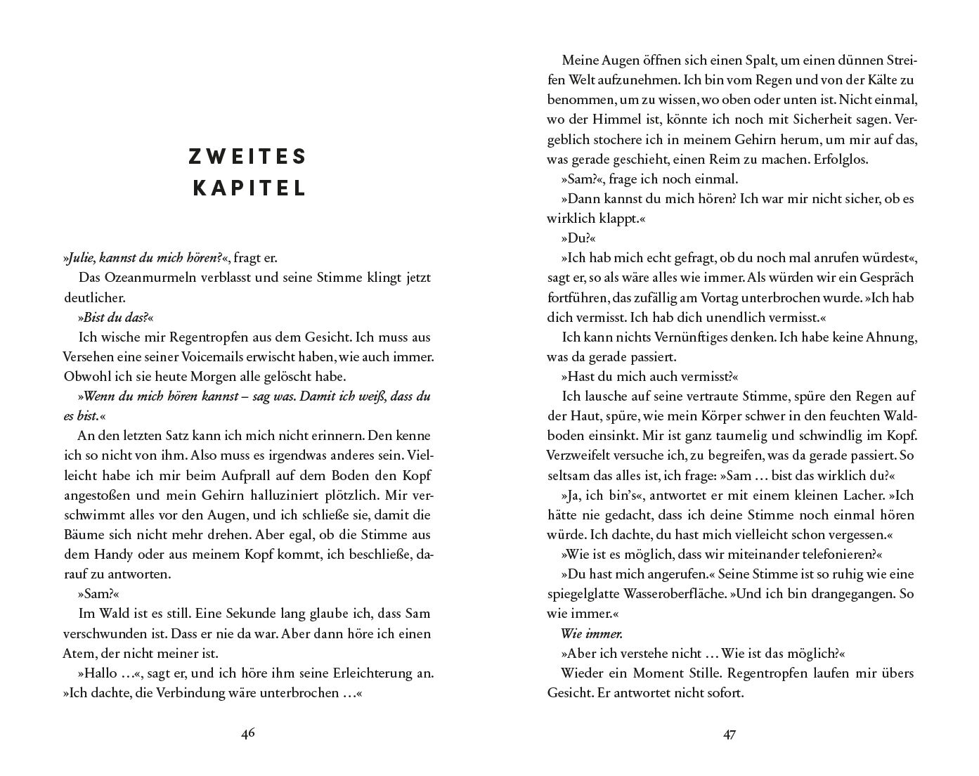 Julie ist am Boden zerstört, geht nicht zur Beerdigung, wirft weg, was sie von Sam besitzt, und versucht ihn zu vergessen. Doch als sie eine Notiz von Sam in ihrem alten Jahrbuch liest, kommt alles wieder hoch. Nur um seine Stimme zu hören, ruft sie Sams Handynummer an. Und Sam hebt ab ...