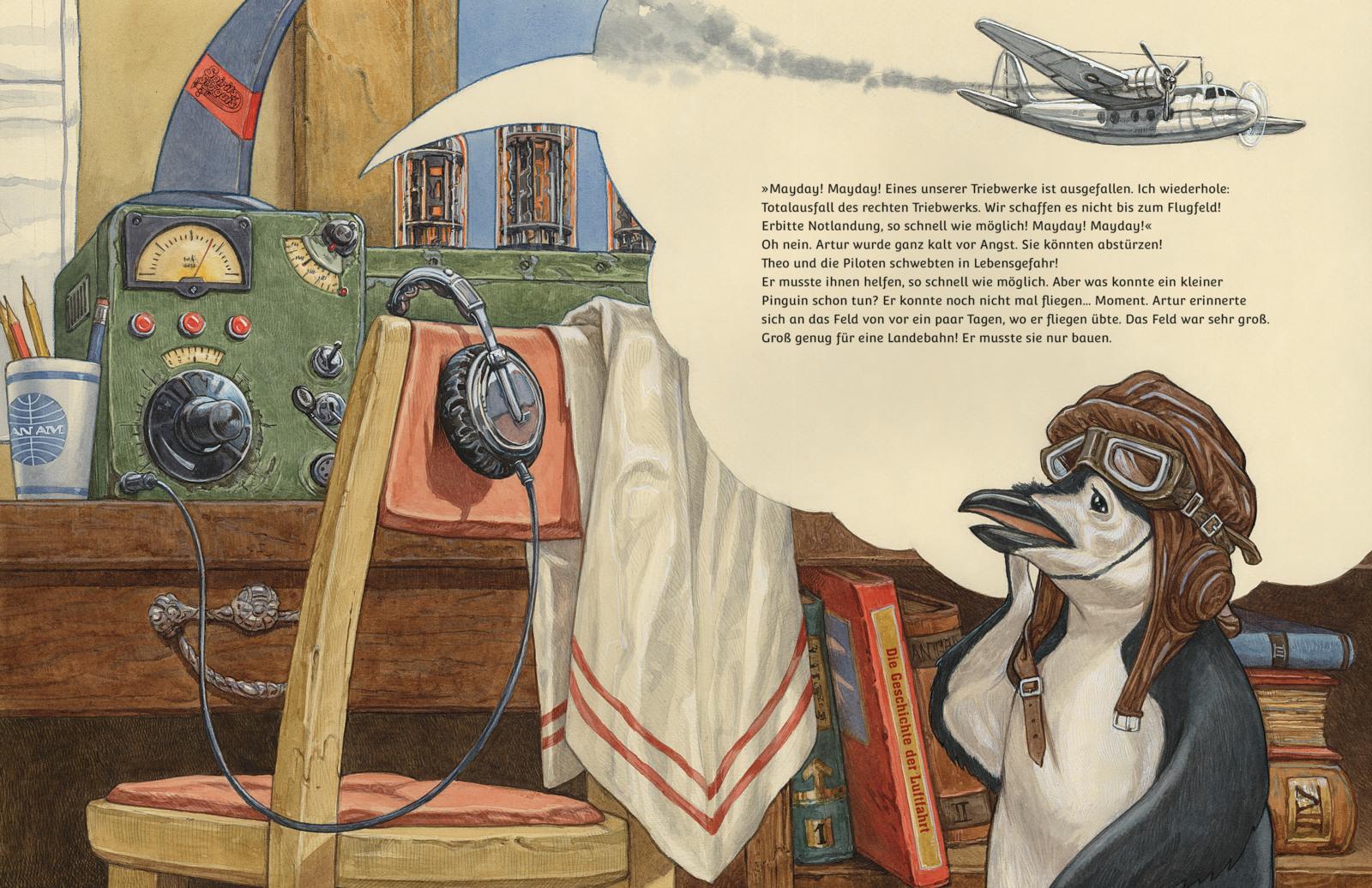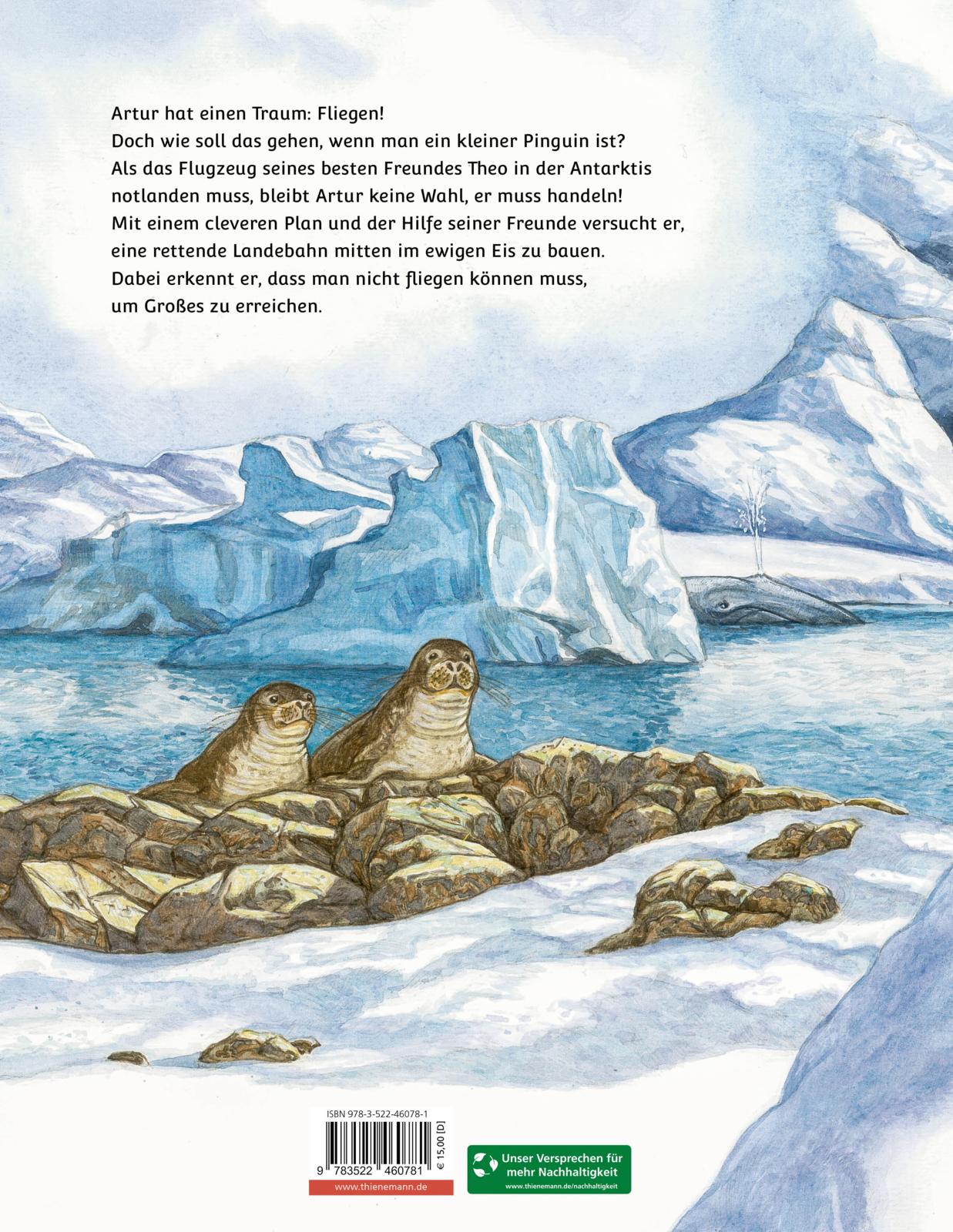 Artur, der Pinguin, hat einen großen Traum: fliegen! Doch so sehr er sich bemüht, seine Flügel tragen ihn nicht. Als ein Flugzeug in der Antarktis notlanden muss, sieht Artur seine Chance gekommen. Mit Mut, einer genialen Idee und der Hilfe seiner tierischen Freunde baut er eine Landebahn mitten im ewigen Eis - und beweist, dass man auch ohne Flügel hoch hinauskommen kann. Ein inspirierendes Bilderbuch über große Träume, clevere Lösungen und die Kraft der Freundschaft.