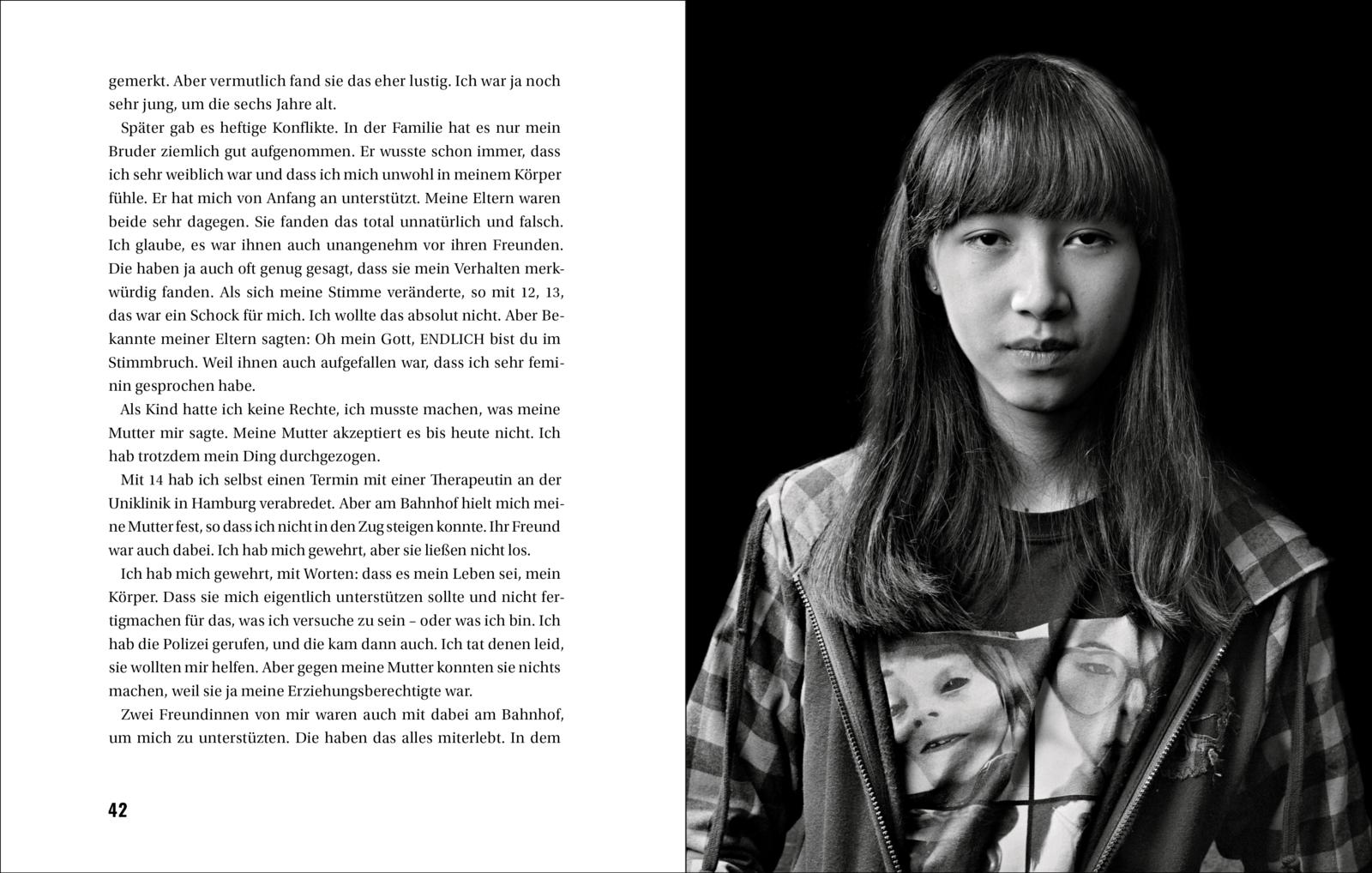 Wann weiß man, ob man ein Junge oder Mädchen ist? Als was die Welt einen sieht, lernt man ziemlich früh. Doch was, wenn sich das nicht gut anfühlt? Und wie finde ich zu mir selbst in einer Welt voller Erwartungen und Normen? In einfühlsamen Porträts und ausdrucksstarken Schwarz-Weiß-Fotografien über viele Jahre hinweg erzählen Transjugendliche von ihrer Reise zur eigenen Identität und zu einem Körper, der sich für sie richtig anfühlt. Sie erzählen von ihren Herausforderungen, von ihren Hoffnungen und Träumen. Die Journalistin Beate Lakotta und der Fotograf Walter Schels haben sie begleitet und geben tiefe Einblicke in eine komplexe Suche nach dem Selbst.