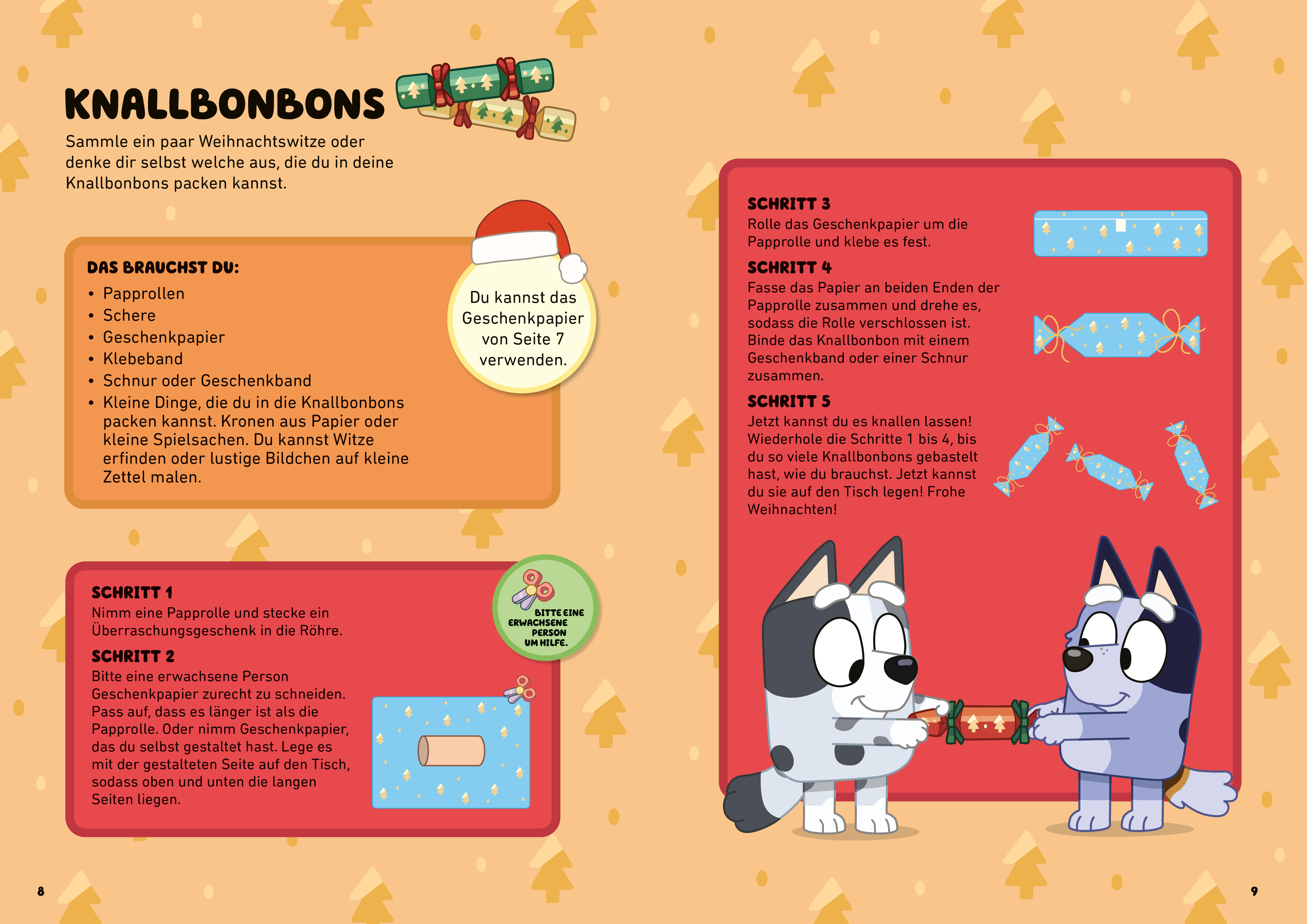 Bluey und Bingo treffen sich in der Advents- und Weihnachtszeit gern mit Freunden und Familie, um Weihnachtsgeschenke, Weihnachtskarten, Weihnachtschmuck und vieles mehr zu basteln.Jede Menge Bastel- und Beschäftigungstipps für die gemütlichen Stunden vor Weihnachten - für Kinder ab 3 Jahren, die die Animationsserie BLUEY lieben.