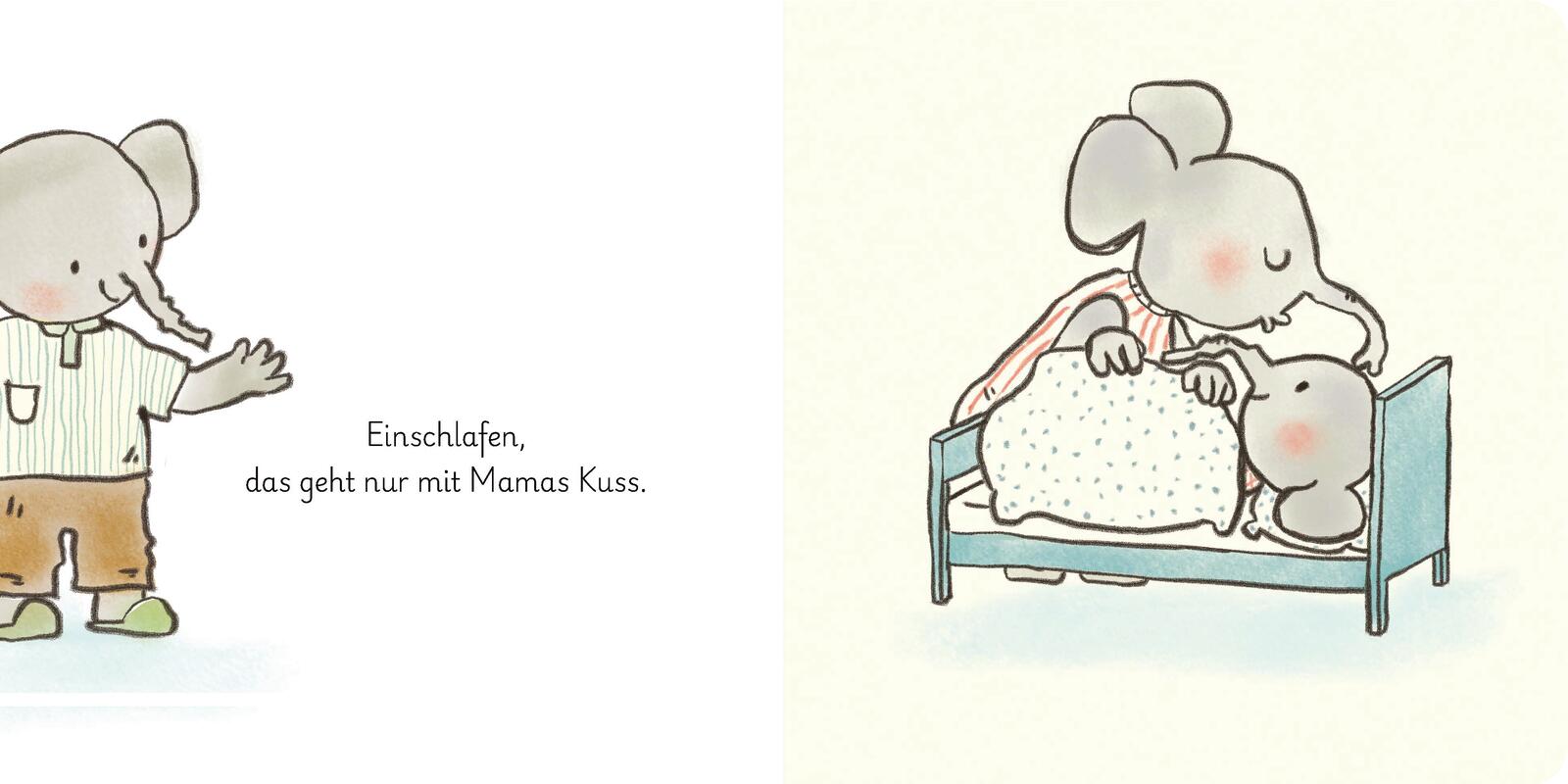 Sam kann schon ganz viel alleine. Er zieht sich abends ganz alleine seinen Schlafanzug an, putzt alleine die Zähne und kuschelt sich in sein Bett. Doch es gibt eine Sache, die er noch nicht alleine schafft: einschlafen. Denn das geht nur mit Mamas Kuss.