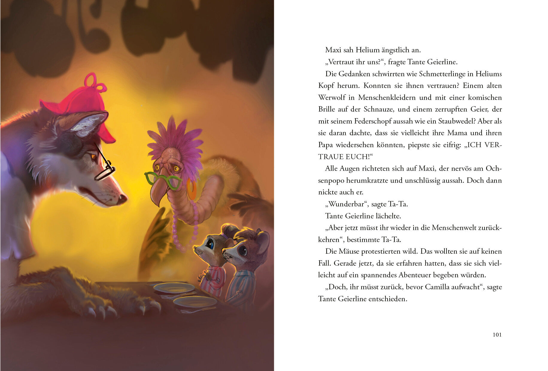 Die Mäuse-Zwillinge Maxi und Helium leben im Haus von Camilla und lieben sie über alles! Aber wie und warum sie zu ihr gekommen sind, wissen die Geschwister nicht. Doch eines Nachts entdecken die beiden ein Loch in der Wand. Wo kommt es her? Und noch viel wichtiger: Wohin führt es? Finden die Zwillinge auf der anderen Seite vielleicht Antworten auf ihre Fragen? Als Maxi und Helium hindurch schlüpfen, landen sie an einem zauberhaften Ort: im magischen Tierkönigreich. Und dort werden sie bereits erwartet!