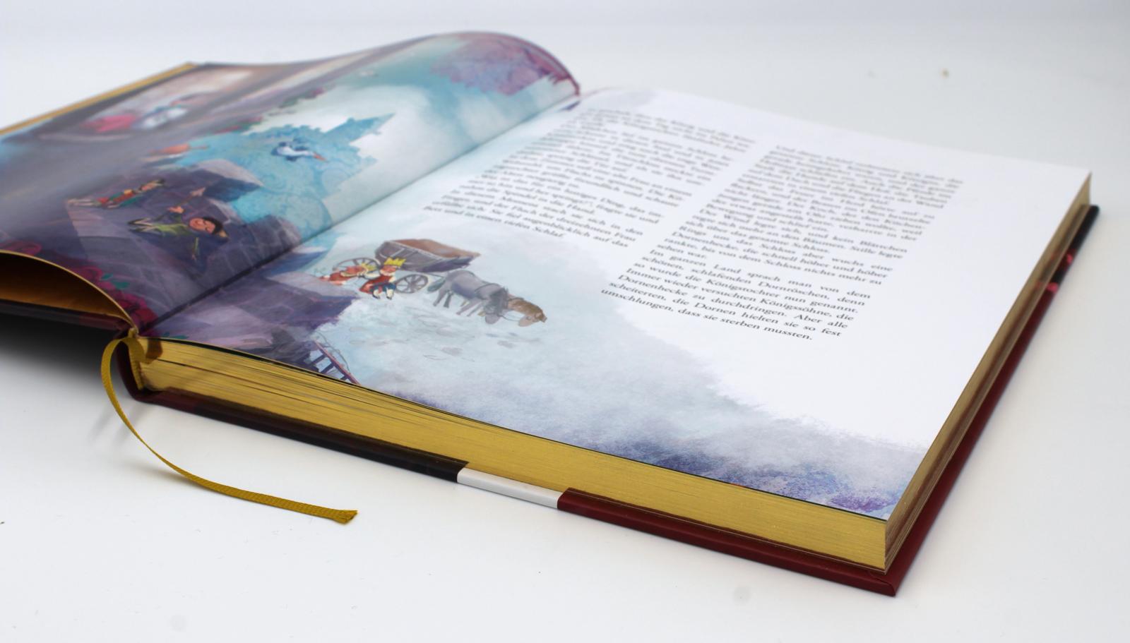 Schöner kann ein Märchenbuch kaum sein: wertvoll ausgestattet mit Goldschnitt, Halbleinenrücken und goldenem Leseband ist es ein richtiges Schmuckstück!
