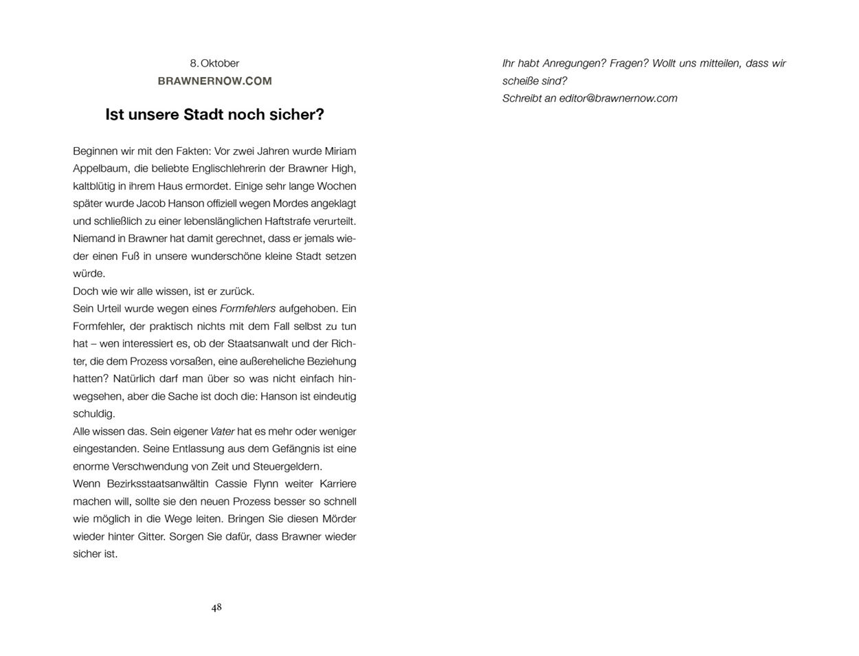 Als der brutale Mord an einer Lehrerin ihre gemütliche Kleinstadt erschüttert, zerbricht die Freundschaft zwischen Henry, Grace und Ally. Denn Jake, Henrys großer Bruder, wird für schuldig befunden - und Grace ist diejenige, die den entscheidenden Hinweis für die Verurteilung liefert. Für Ally und Henry ein schrecklicher Verrat. Zwei Jahre später wird der Prozess neu aufgerollt, doch Grace ist sich auf einmal nicht mehr sicher, was sie in der Tatnacht damals wirklich gesehen hat. Die drei beginnen zu ermitteln, denn wenn Jake unschuldig ist, ist der eigentliche Täter noch auf freiem Fuß. Doch wem kann man jetzt noch trauen? Wer ist wirklich unschuldig und wer in Wahrheit ein eiskalter Mörder?Drei Freunde, drei Wahrheiten, eine Mordanklage, die alles verändert - atemberaubende Spannung garantiert!