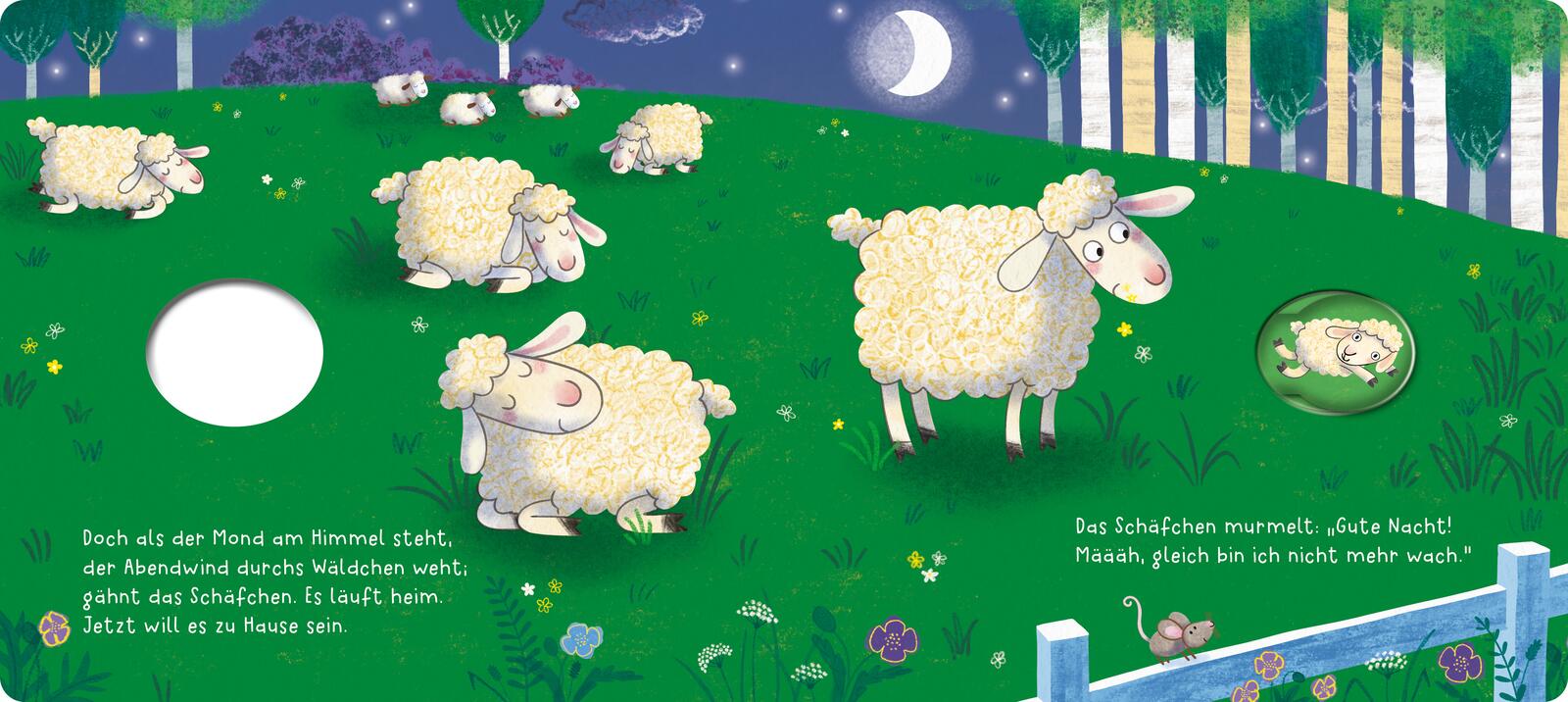 Dieses liebevoll gestaltete Pappebuch fördert spielerisch die Sprachentwicklung und Feinmotorik - und sorgt für jede Menge Mitmach-Spaß: Am Buch ist ein weiches Stoffschäfchen befestigt. Zieht das Kind daran, erklingt ein feines "Määääh"!