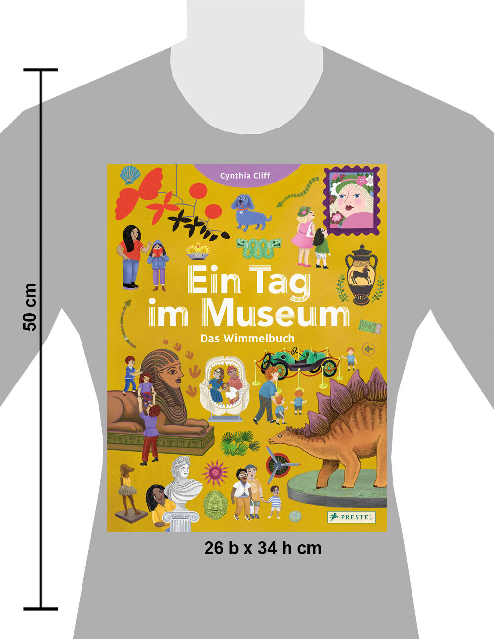 In diesem riesigen Museum gibt es viel zu erleben! Es gibt einen Dinosaurier-Raum und einen Saal mit allen möglichen Verkehrsmitteln vom Fahrrad über den Zug bis zu Flugzeug und Raumschiff. In der Abteilung für Kunst kannst du Bilder und Skulpturen aus den verschiedensten Epochen bestaunen und im Skulpturengarten lässt sich die Kunst im Freien genießen. Den alten Zivilisationen wie Römern, Griechen und Ägyptern ist ebenso eine Ausstellung gewidmet wie dem Meer mit seinen Pflanzen und Lebewesen. In Cynthia Cliffs überbordenden bunten Wimmelbildern schlendern, staunen und genießen die unterschiedlichsten Charaktere der ganzen diversen Gesellschaft den Museumsbesuch - schon in der Eingangshalle wirst du viele Bekannte aus Cynthia Cliffs Ferien-Wimmelbuch "Wir fahren weg!" wiedertreffen: Said und Sally bewundern die Gemälde, während die frechen Zwillinge Rufus und Ronja Verstecken spielen und Tom nicht einmal hier sein Buch zur Seite legt. Tiere sind ja (außer dem Blindenhund) im Museum nicht erlaubt. Aber Carlos frecher Hund Pepe hat sich hineingeschmuggelt und Carlo ist unentwegt auf der verzeifelten Suche nach ihm. Dieses Buch bietet auf 14 illustrierten Seiten unzählige kleine Geschichten und Erlebnisse. Auf den detailreichen Illustrationen von Cynthia Cliff entdecken Kinder nicht nur viele tolle diverse Charaktere, sondern sie erfahren auch, dass es ganz unterschiedliche Museen und Ausstellungen gibt.