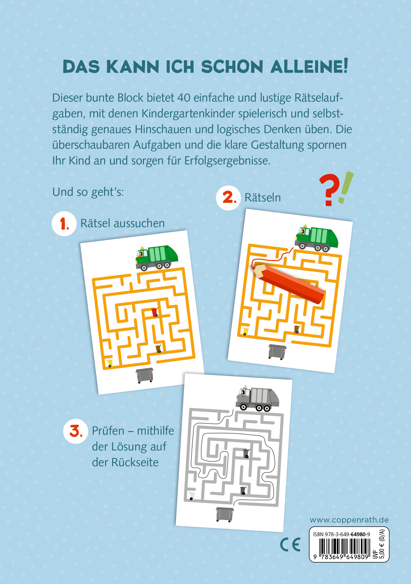 | Schlagworte | Beschäftigung • Kindergartenrätsel • Labyrinth • Lernen • rätsel ab 4 • Rätsel ab 5 • Rätsel ab 6 • Rätselspaß • Suchrätsel • Vorschule |