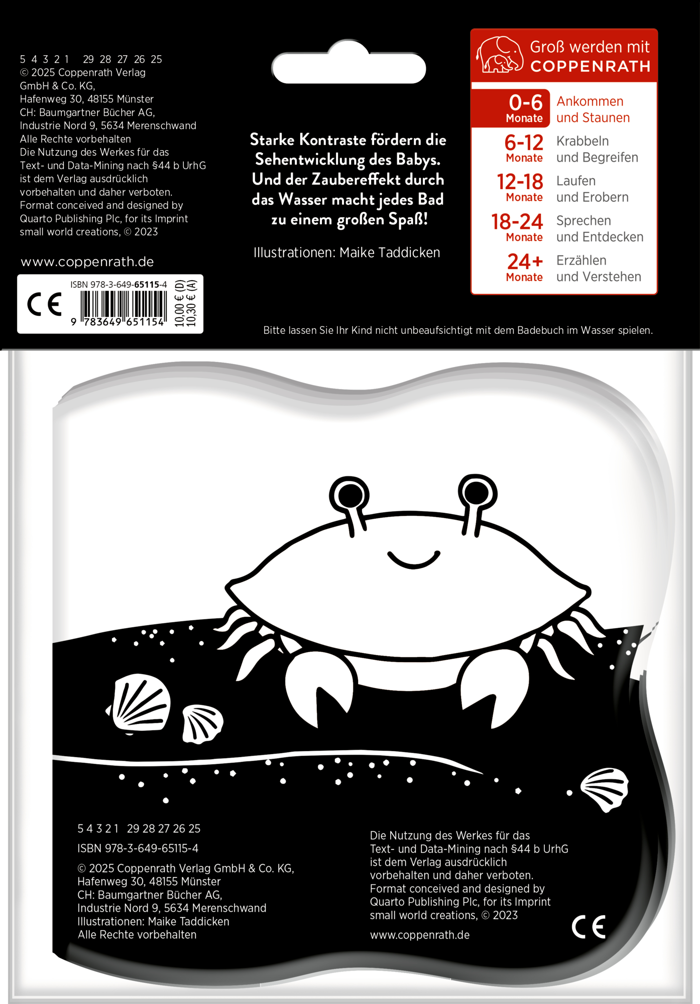 | Schlagworte | Badebuch • Badebuch Coppenrath • Badespielzeug • Badewanne • Badewannenbuch • Farbenwechsel • Kontraste • Magic • Visuelle Stimulation • Wasserspielzeug • Zauberfarbe |