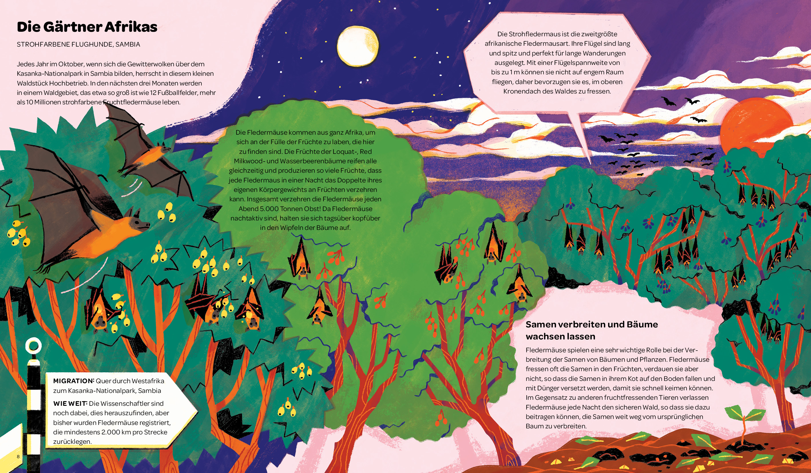 | Schlagworte | Artenvielfalt • Biodiversität • Illustrationen • Instinkte • Kinderbuch • Lebensraum • Lebenszyklus • Nahrungskette • Tiere • Wanderung • Wildtiere |